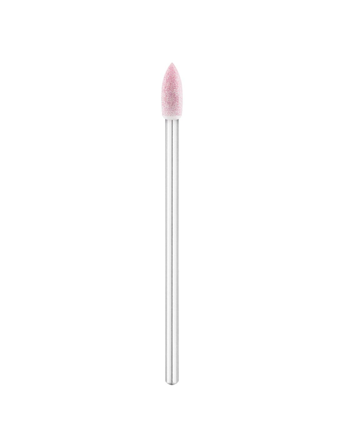 Fresa in pietra a forma di fiamma di colore rosa. La fresa serve a rimuovere le cuticole e viene utilizzata per i trattamenti di manicure e pedicure. Ideale per lavorare le unghie in corrispondenza del fusto, rimuovere le cuticole ispessite, ecc.