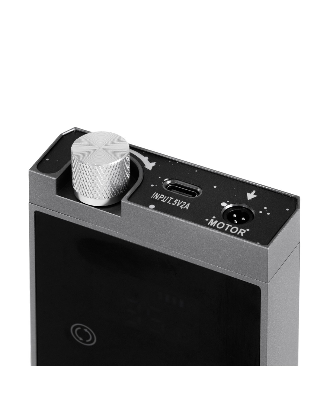 Il quadrante situato nella parte superiore dell'apparecchio consente di regolare in continuo la velocità della testina fino a 35.000 giri al minuto, permettendo di adattarla in modo ottimale alle esigenze individuali e di eseguire comodamente una varietà di trattamenti. Il pannello a sfioramento consente di arrestare facilmente la macchina (funzione di pausa), nonché di cambiare il senso di rotazione, offrendo il pieno controllo della fresa e facilitando l'adattamento del suo funzionamento a servizi specifici. Il chiaro schermo visualizza lo stato dell'apparecchiatura, informandovi sulla velocità e sulla direzione di rotazione, sullo stato della batteria e sulla pausa.