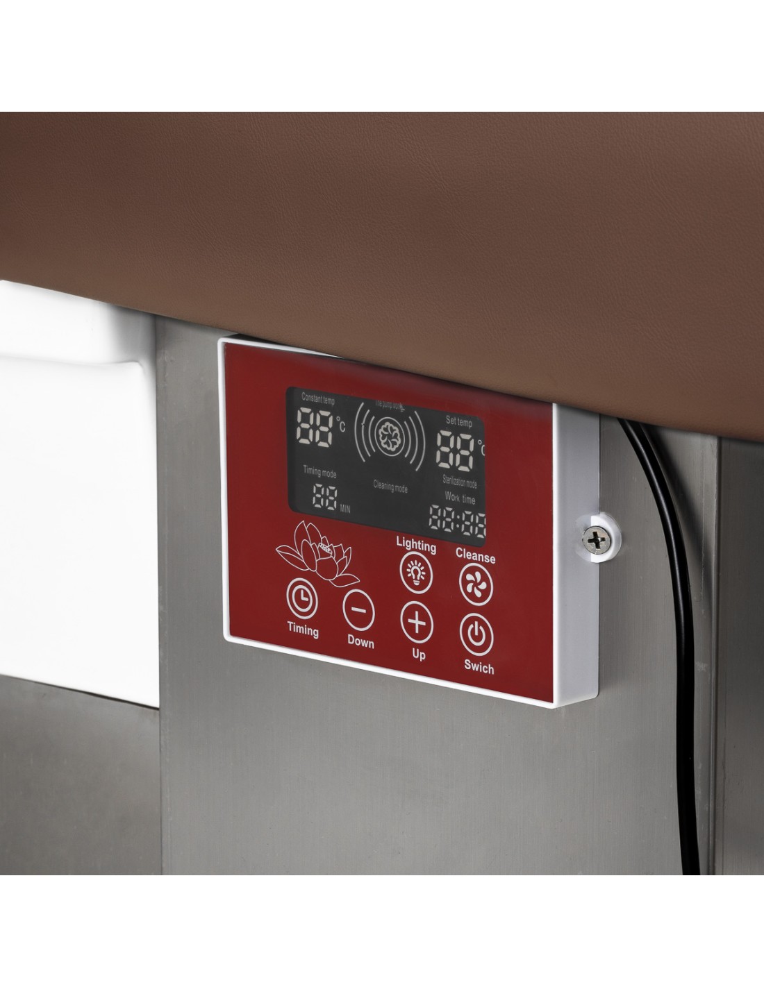Il lettino Head Spa 017 è una combinazione di funzionalità e design moderno. Dotato di un solido telaio in acciaio inox, garantisce stabilità e durata. Il lettino dalla forma ergonomica è rivestito in morbida pelle sintetica nei toni del marrone, per garantire il massimo comfort durante i trattamenti. Inoltre, lo spazio sotto il lettino consente di riporre comodamente cosmetici e accessori, rendendolo una scelta eccellente per i saloni di bellezza e benessere professionali.