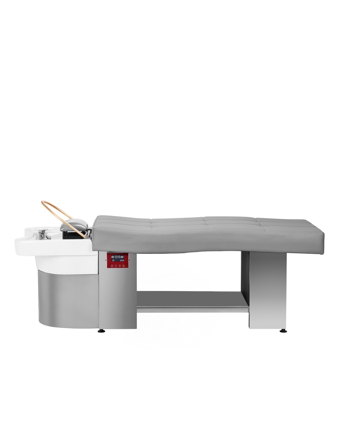Il lettino Head Spa 017 è una combinazione di funzionalità e design moderno. Dotato di un solido telaio in acciaio inox, garantisce stabilità e durata. Il lettino dalla forma ergonomica è rivestito in morbida pelle sintetica nei toni del grigio, per garantire il massimo comfort durante i trattamenti. Inoltre, lo spazio sotto il lettino consente di riporre comodamente cosmetici e accessori, rendendolo una scelta eccellente per i saloni di bellezza e benessere professionali.