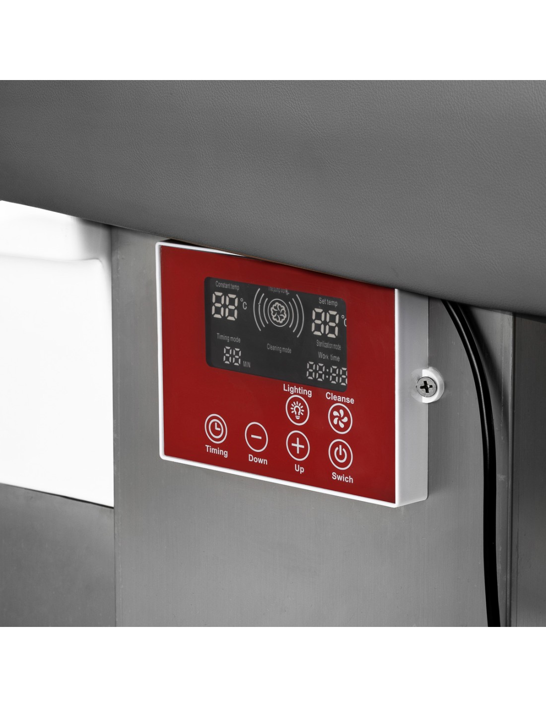 L'intuitivo pannello a sfioramento consente il pieno controllo dei parametri di trattamento, garantendo la praticità d'uso. Permette di regolare il tempo di lavoro e la temperatura dell'acqua e di monitorare i valori correnti. Grazie al display integrato, è possibile verificare in qualsiasi momento la durata del funzionamento dell'apparecchio. Il pannello consente anche di attivare la funzione di terapia della luce, cioè di illuminare la vasca, creando un'atmosfera di relax e lusso. Inoltre, l'unità per la terapia del vapore è dotata di un telecomando per un comodo utilizzo a distanza.