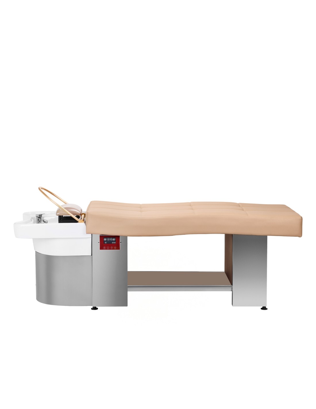 Il lettino Head Spa 017 è una combinazione di funzionalità e design moderno. Dotato di un solido telaio in acciaio inox, garantisce stabilità e durata. Il lettino dalla forma ergonomica è rivestito in morbida pelle sintetica nei toni del beige, per garantire il massimo comfort durante i trattamenti. Inoltre, lo spazio sotto il lettino consente di riporre comodamente cosmetici e accessori, rendendolo una scelta eccellente per i saloni di bellezza e benessere professionali.