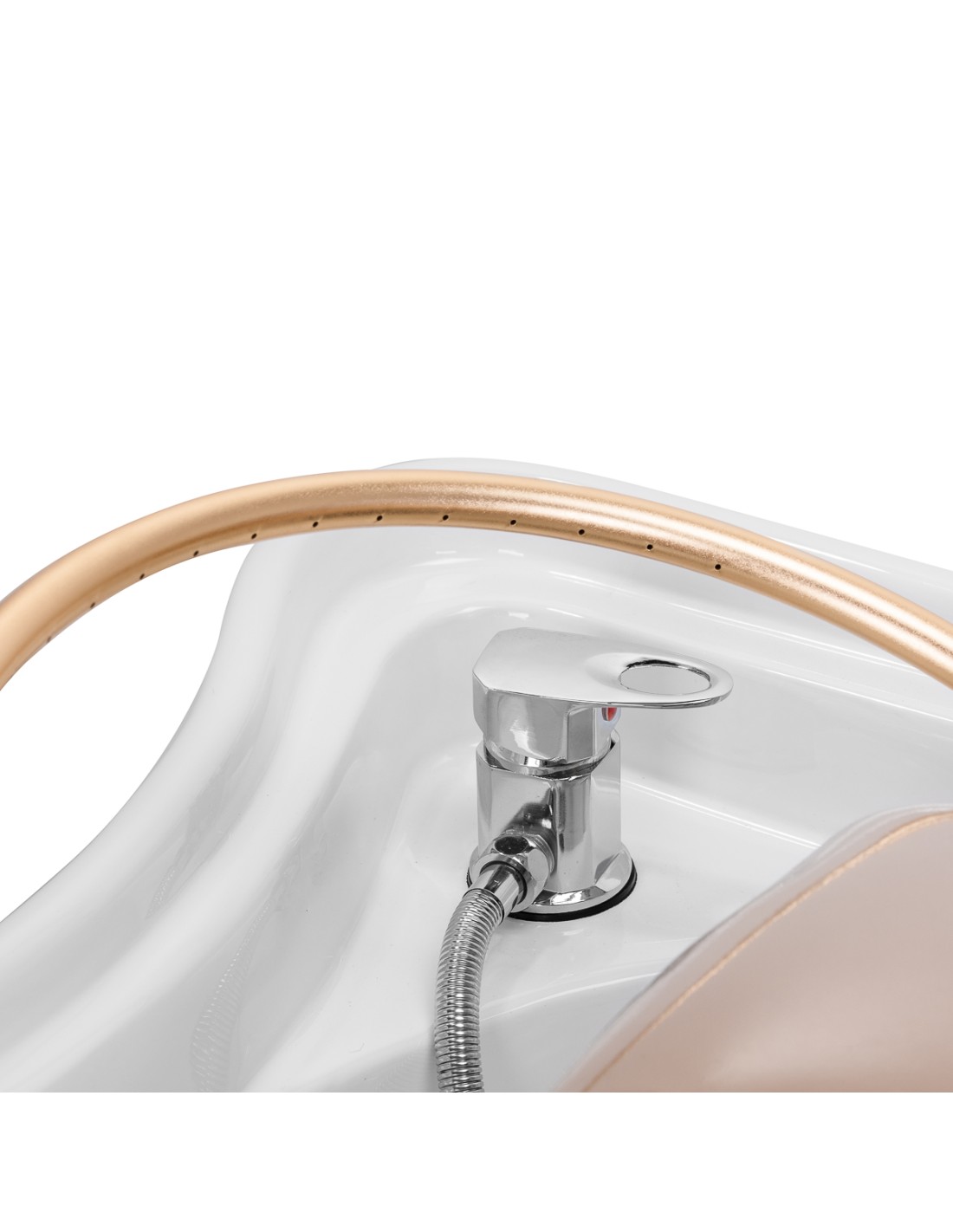 La lavatrice è dotata di un miscelatore che consente di regolare facilmente la temperatura in base alle proprie preferenze. Uno spazio dedicato alla cornetta della doccia facilita il lavoro, mentre un tappo cromato con uno speciale filtro consente di controllare il flusso dell'acqua e di mantenere gli standard igienici del salone. L'attacco dell'acqua è posizionato all'interno della base, in modo da nascondere efficacemente le tubature. Il lettino è sagomato per garantire il comfort durante i vari trattamenti. La combinazione di funzionalità e convenienza rende ancora più confortevole il lavoro in un salone di parrucchieri o in un centro SPA.