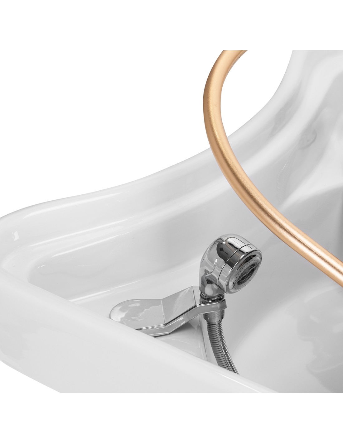 La lavatrice è dotata di un miscelatore che consente di regolare facilmente la temperatura in base alle proprie preferenze. Uno spazio dedicato alla cornetta della doccia facilita il lavoro, mentre un tappo cromato con uno speciale filtro consente di controllare il flusso dell'acqua e di mantenere gli standard igienici del salone. L'attacco dell'acqua è posizionato all'interno della base, in modo da nascondere efficacemente le tubature. Il lettino è sagomato per garantire il comfort durante i vari trattamenti. La combinazione di funzionalità e convenienza rende ancora più confortevole il lavoro in un salone di parrucchieri o in un centro SPA.