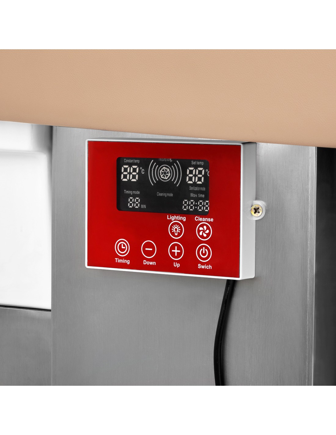 Il lettino Head Spa 017 è una combinazione di funzionalità e design moderno. Dotato di un solido telaio in acciaio inox, garantisce stabilità e durata. Il lettino dalla forma ergonomica è rivestito in morbida pelle sintetica nei toni del beige, per garantire il massimo comfort durante i trattamenti. Inoltre, un'anta scorrevole con serratura consente di riporre comodamente ed esteticamente cosmetici e accessori sotto il lettino, rendendolo la scelta perfetta per i saloni di bellezza e benessere professionali.
