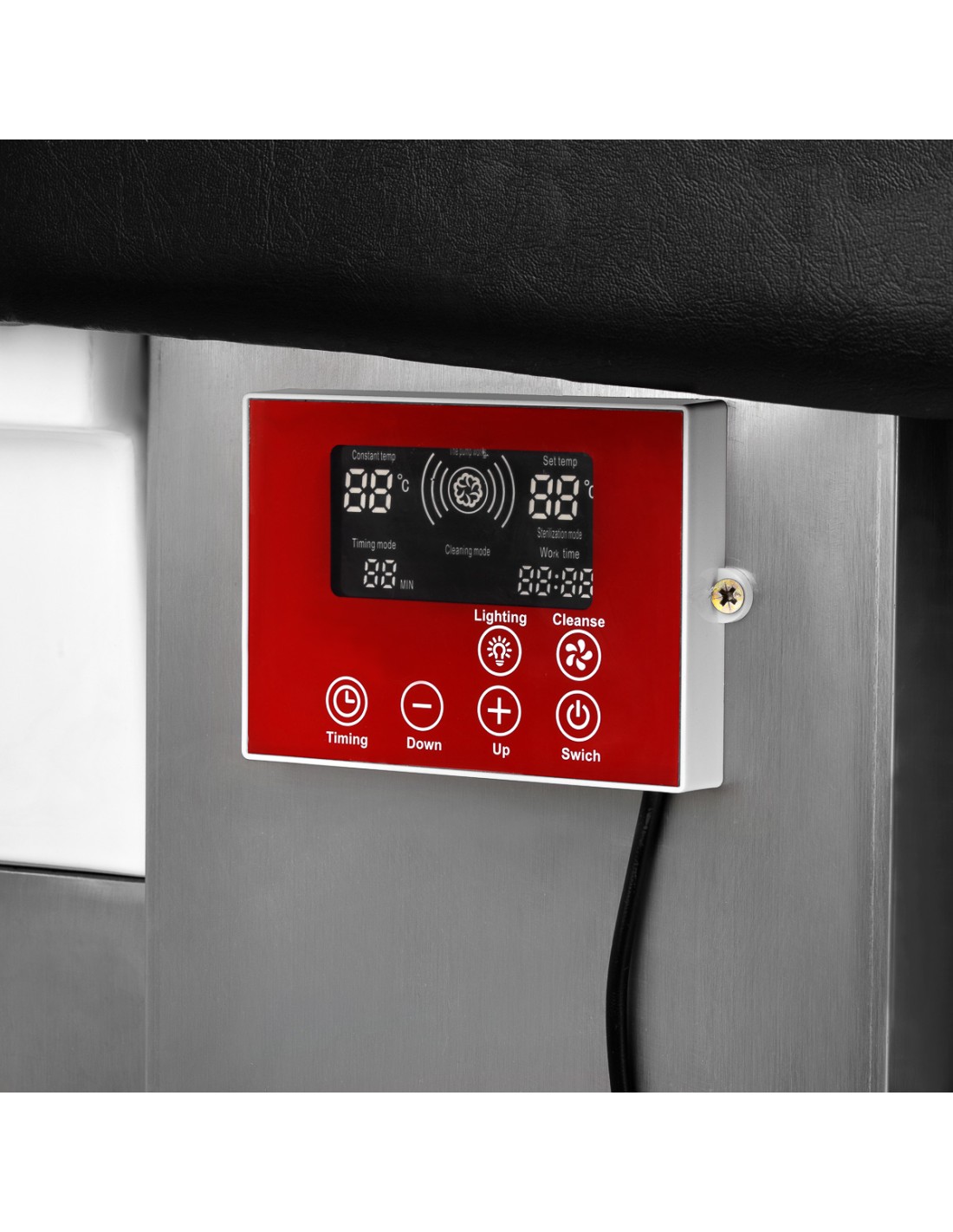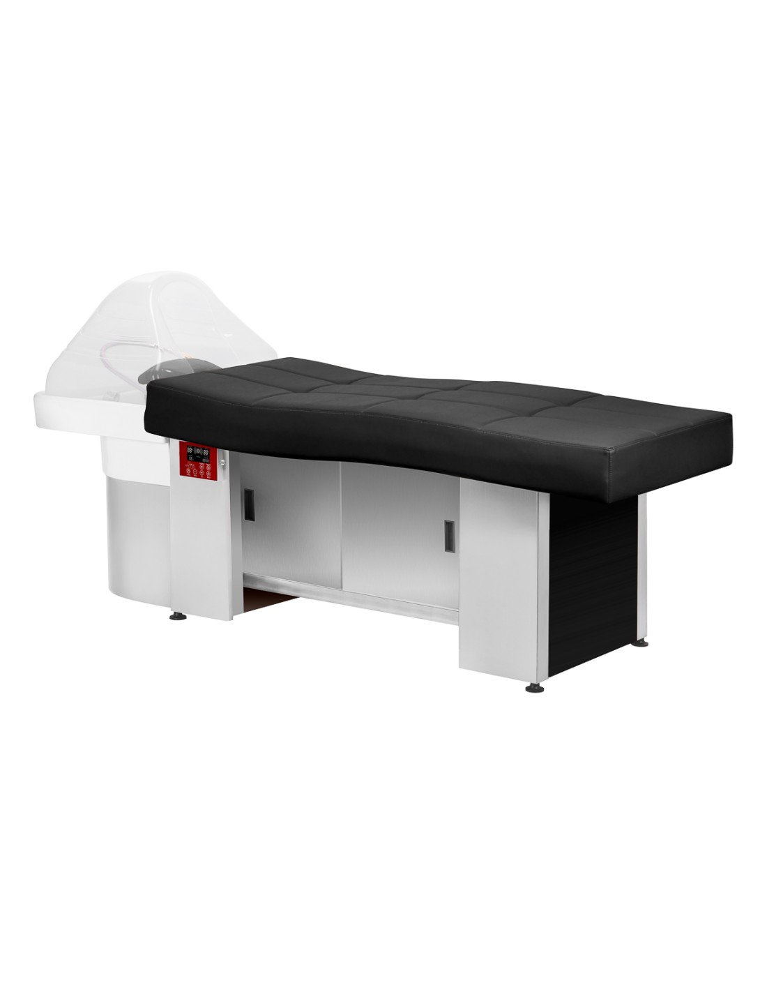 Il lettino Head Spa 017 è una combinazione di funzionalità e design moderno. Dotato di un solido telaio in acciaio inox, garantisce stabilità e durata. Il lettino dalla forma ergonomica è rivestito in morbida pelle sintetica nei toni del nero, per garantire il massimo comfort durante i trattamenti. Inoltre, una porta scorrevole con serratura consente di riporre comodamente ed esteticamente cosmetici e accessori sotto il lettino, rendendolo la scelta perfetta per i saloni di bellezza e benessere professionali.