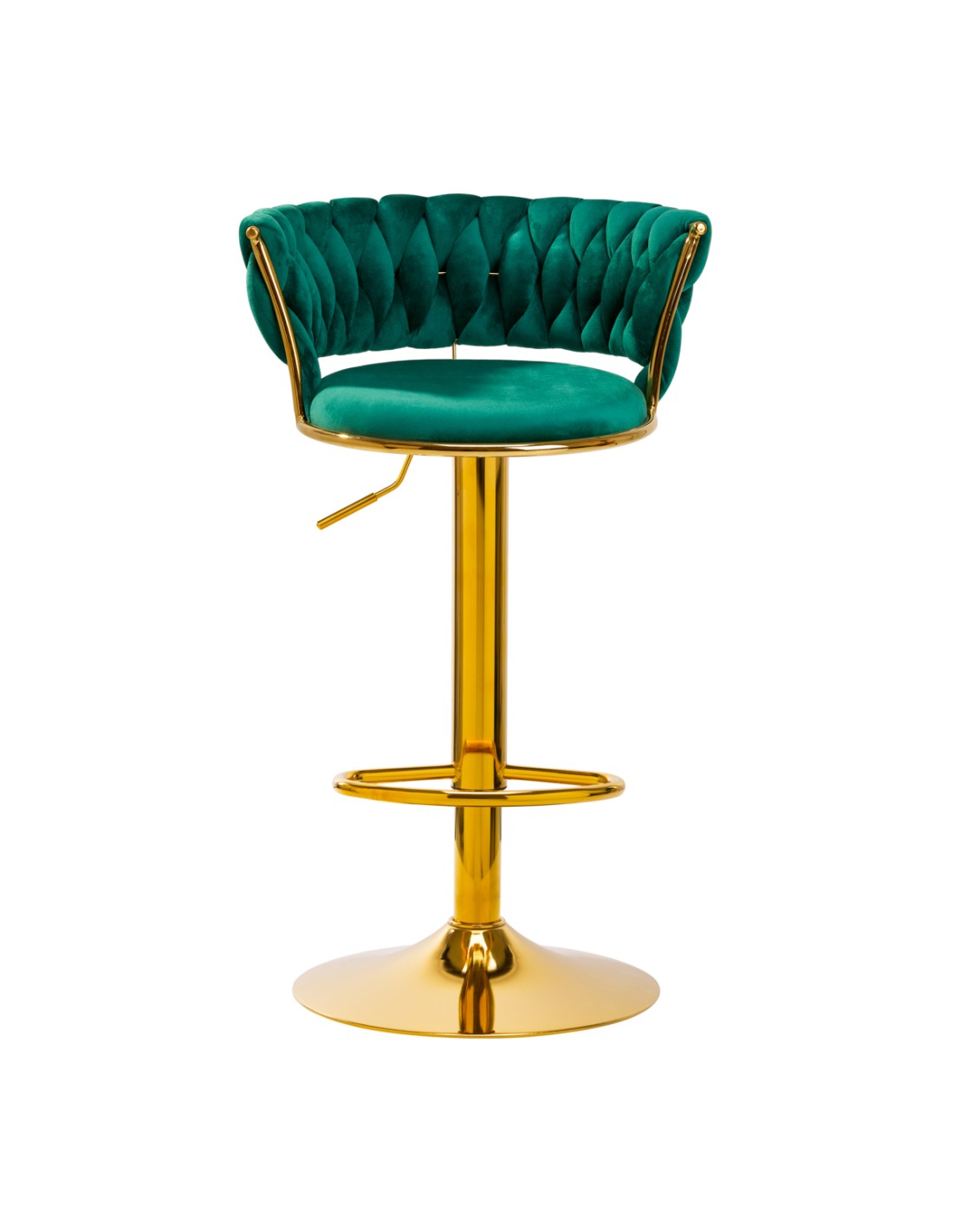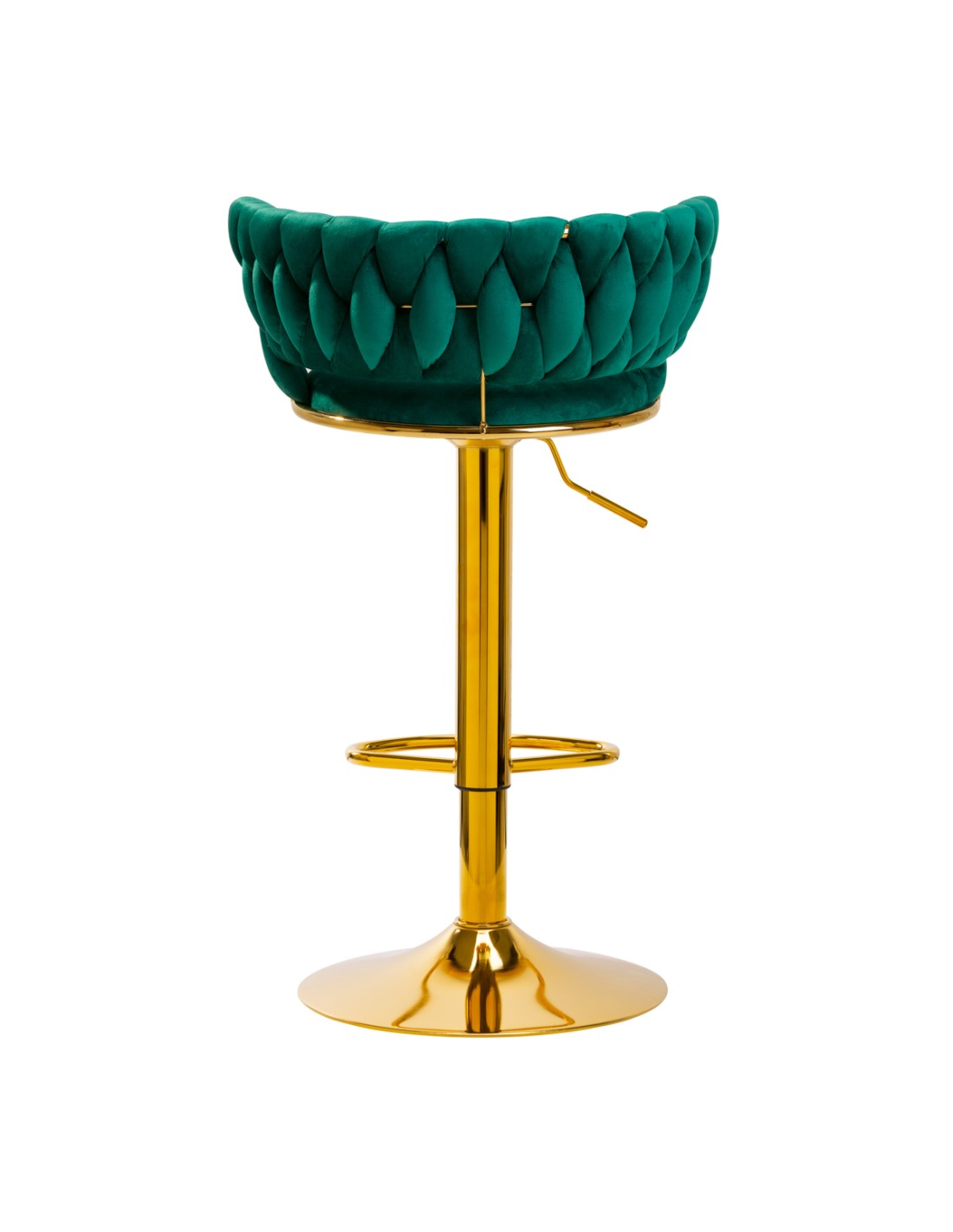 Il rivestimento in velluto piacevole al tatto nei toni del verde conferisce all'hocker un carattere unico, mentre il tessuto esteticamente intrecciato sullo schienale sottolinea l'aspetto unico del mobile. La finitura rende il mobile un'attrazione per gli occhi. La cornice dorata aggiunge eleganza e prestigio, integrandosi perfettamente con il velluto.