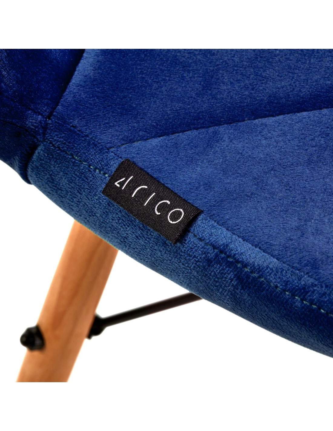 La seduta è rivestita in velluto piacevole al tatto nei toni del blu navy. Questo conferisce un aspetto esclusivo e garantisce il comfort d'uso. Le accurate cuciture dalle forme geometriche danno un tocco di eleganza, mentre la struttura metallica che collega le gambe, nei toni del nero, aggiunge stabilità al mobile. Le gambe in legno con finitura opaca sono rifinite con una protezione in plastica per evitare danni accidentali. La poltrona in stile scandinavo è un mobile confortevole che diventerà una decorazione per l'area reception di qualsiasi salone di bellezza.