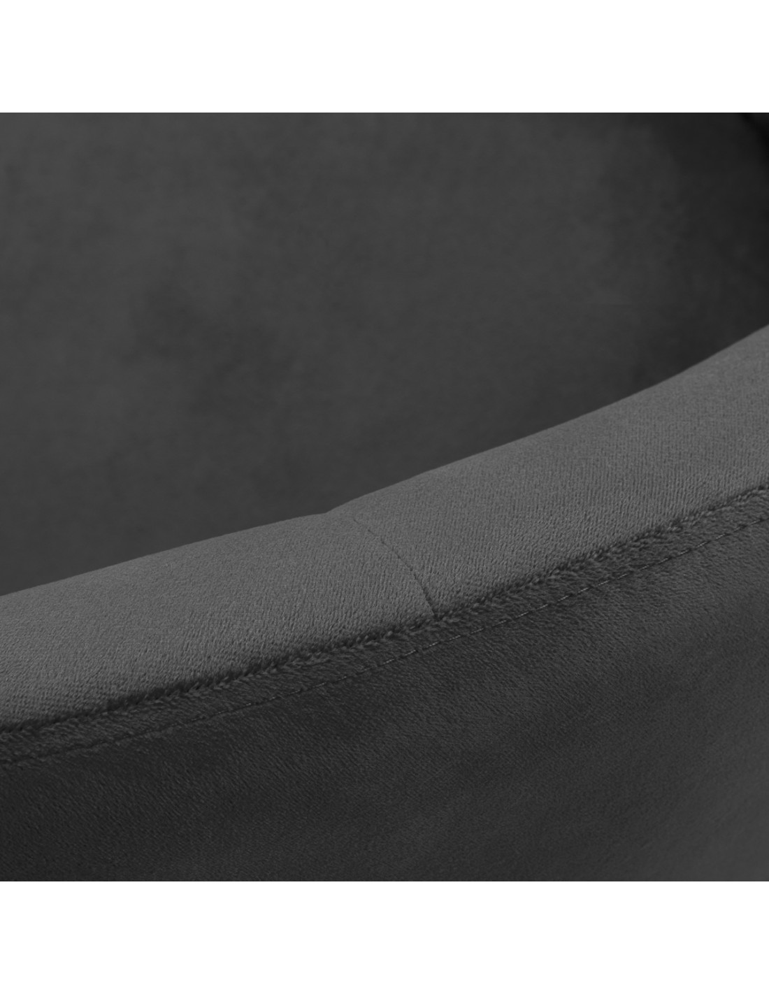 La finitura lussuosa rende questo mobile un vero e proprio richiamo visivo. Piacevole al tatto, il rivestimento in velluto nei toni del grigio e la trapuntatura decorativa gli conferiscono un carattere unico. La base stabile e rotonda nei toni dell'oro aggiunge eleganza, integrandosi perfettamente con il velluto. L'estetica della lavorazione, il comfort d'uso, lo schienale ergonomico e la trapuntatura estetica fanno sì che la poltrona soddisfi anche gli utenti più esigenti.