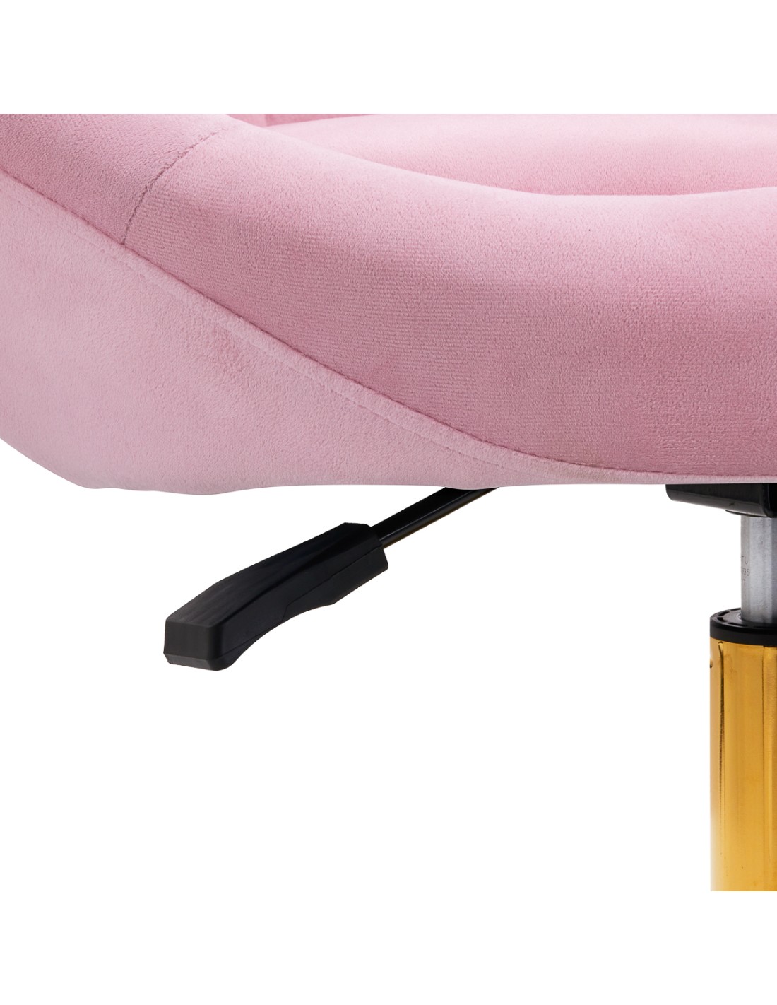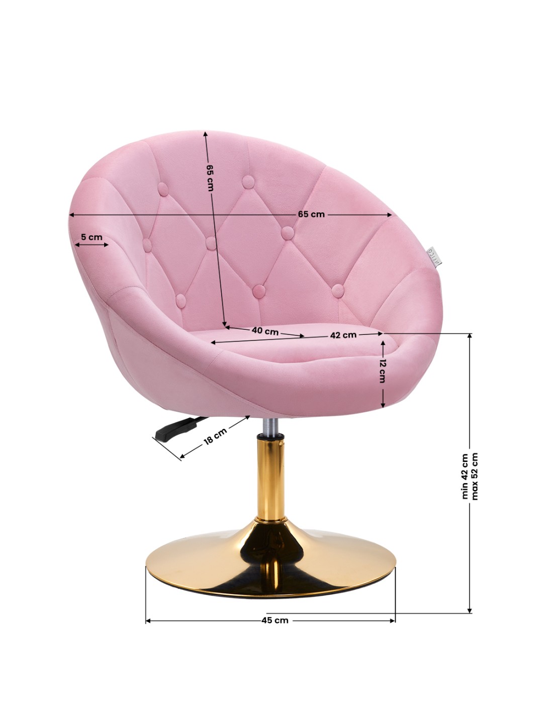 La finitura lussuosa rende questo mobile un vero e proprio richiamo visivo. Piacevole al tatto, il rivestimento in velluto nei toni del rosa e la trapuntatura decorativa gli conferiscono un carattere unico. La base stabile e rotonda nei toni dell'oro aggiunge eleganza, integrandosi perfettamente con il velluto. L'estetica della lavorazione, il comfort d'uso, lo schienale ergonomico e la trapuntatura estetica fanno sì che la poltrona soddisfi anche gli utenti più esigenti.