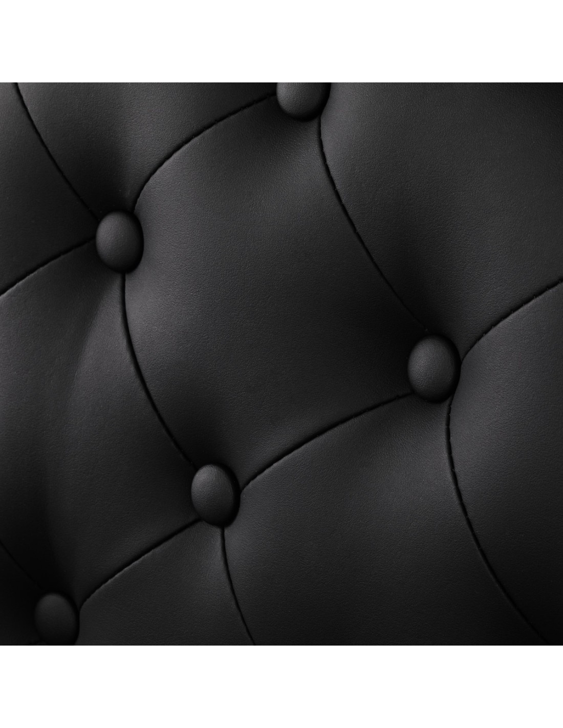 La solida struttura della base garantisce stabilità e un elevato comfort di utilizzo. L'imbottitura del sedile in schiuma durevole e resistente alla deformazione e il rivestimento in pelle sintetica piacevole al tatto con finitura opaca garantiscono la durata del mobile e il suo utilizzo confortevole per lungo tempo. I materiali utilizzati rendono l'apparecchiatura resistente all'umidità, durevole e facile da pulire. Il rivestimento nei toni del nero con trapuntatura e bottoni decorativi , così come il poggiapiedi decorato, gli conferiscono un carattere unico. La poltrona con il suo design distintivo, che ricorda lo stile vintage, si inserisce perfettamente nell'ambiente dei barbieri, sottolineandone l'atmosfera unica.