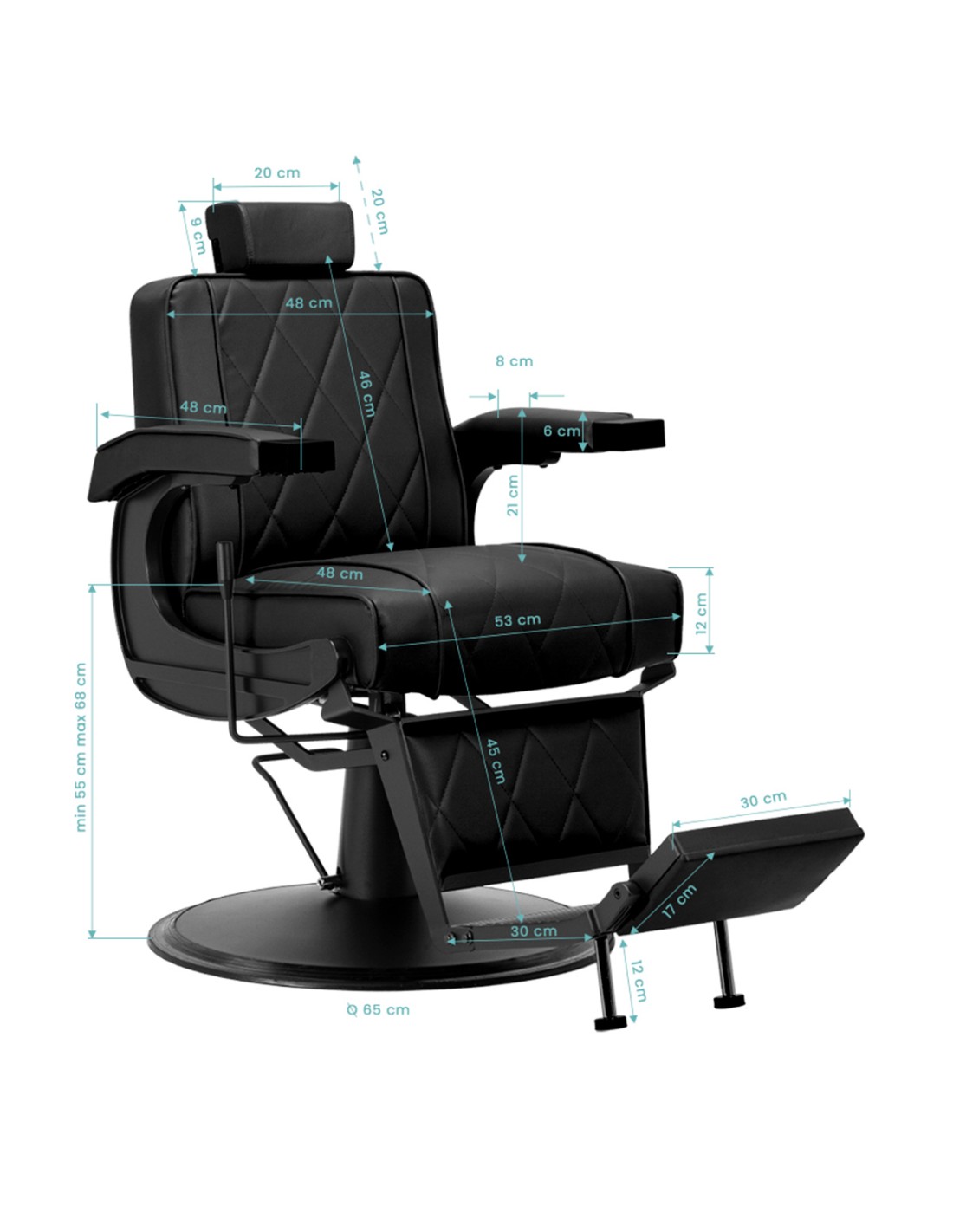 La solida struttura della base rotonda garantisce stabilità e un elevato comfort di utilizzo. L'imbottitura della seduta in schiuma resistente alla deformazione e il rivestimento in pelle sintetica piacevole al tatto con finitura opaca garantiscono la durata del mobile e il suo utilizzo confortevole per lungo tempo. Le eleganti cuciture sul rivestimento conferiscono alla poltrona un carattere che ricorda il design automobilistico, sottolineandone l'aspetto elegante. Inoltre, la rendono resistente all'umidità, durevole e facile da pulire. Il rivestimento nei toni del nero le conferisce un carattere unico e lo stile minimalista le permette di inserirsi nell'arredamento di qualsiasi barberia.