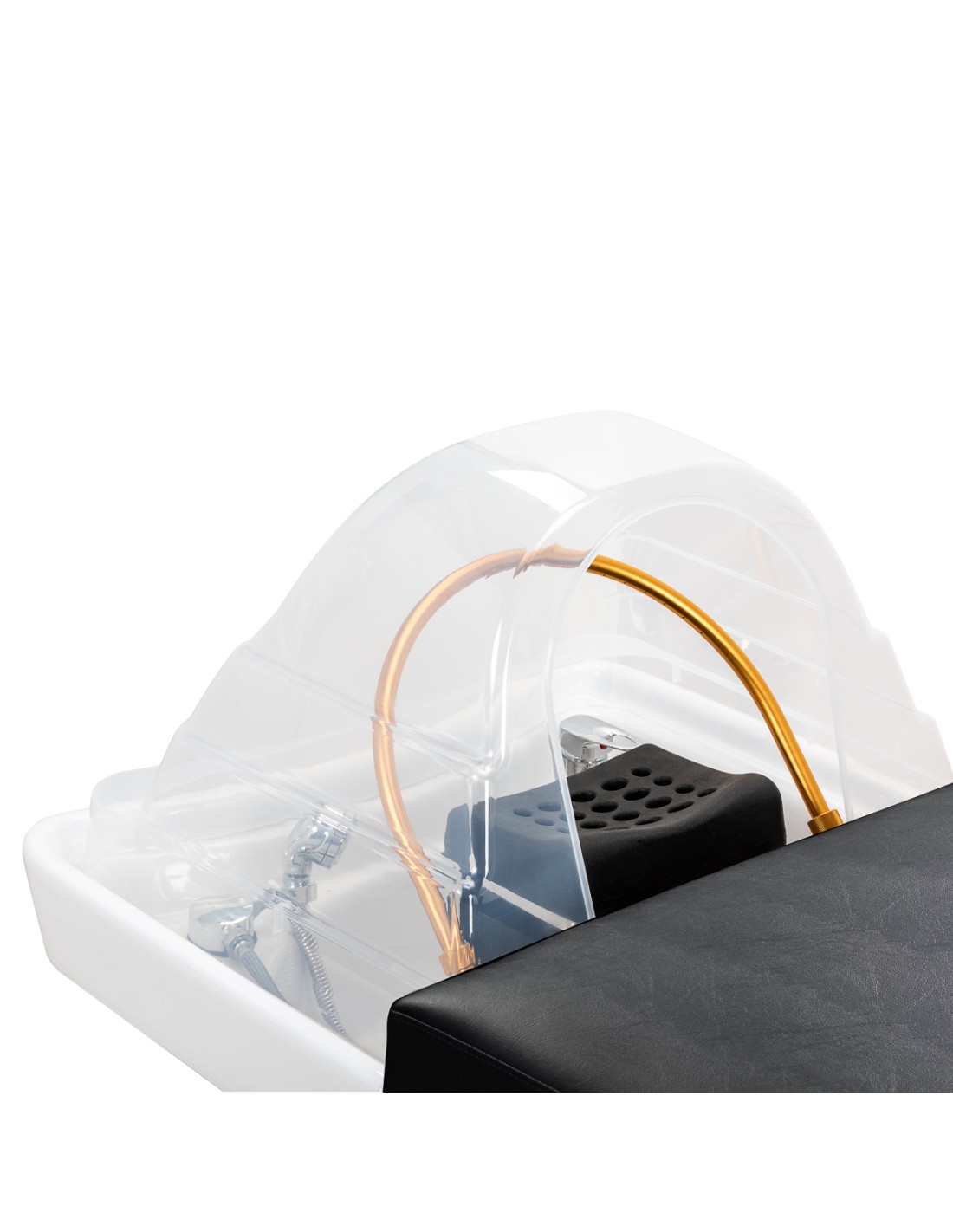 Uno speciale arco con inclinazione regolabile crea un effetto cascata che pulisce intensamente il cuoio capelluto e agisce come un massaggio naturale, migliorando la circolazione sanguigna, riducendo la tensione e lo stress. Il flusso d'acqua controllato con precisione favorisce la rigenerazione dei capelli e idrata intensamente la pelle. La cascata regolabile consente una pulizia profonda del cuoio capelluto e il rilassamento, dando sollievo a disturbi come mal di testa e rigidità del collo. Grazie a un sistema intelligente a circuito chiuso, l'arco preleva l'acqua dalla vasca e la riutilizza, garantendo un massaggio idrico continuo.