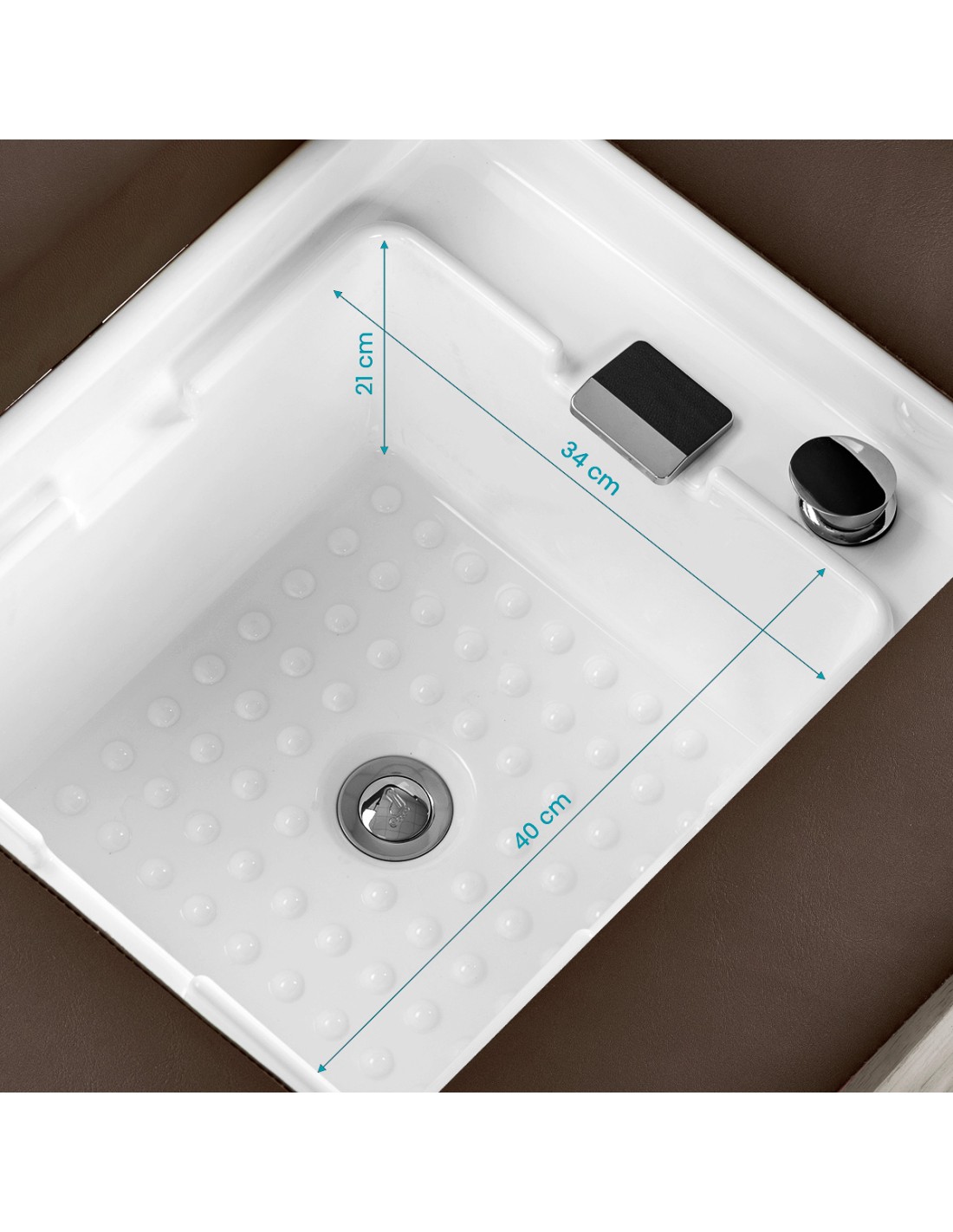 Il lavabo è dotato di un miscelatore che consente di regolare facilmente la temperatura in base alle preferenze del cliente. Un pratico alloggiamento per il soffione facilita il lavoro, mentre un tappo con uno speciale filtro consente di controllare il flusso dell'acqua e di mantenere elevati standard igienici nel salone. L'allacciamento dell'acqua si trova all'interno sotto la vasca e sul retro sotto il piatto doccia , nascondendo esteticamente l'installazione. Il lettino ergonomico offre comfort e sostegno adeguato durante i trattamenti, mentre il pouf incluso migliora il comfort del personale. La combinazione di funzionalità e convenienza rende questa stazione di lavaggio un' attrezzatura versatile sia per i saloni di parrucchieri che per le SPA.
