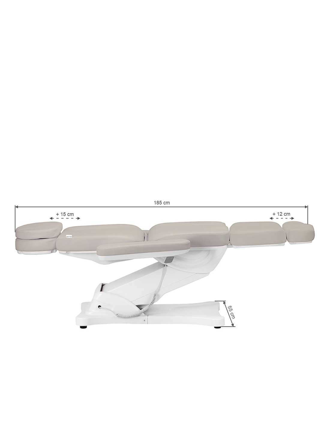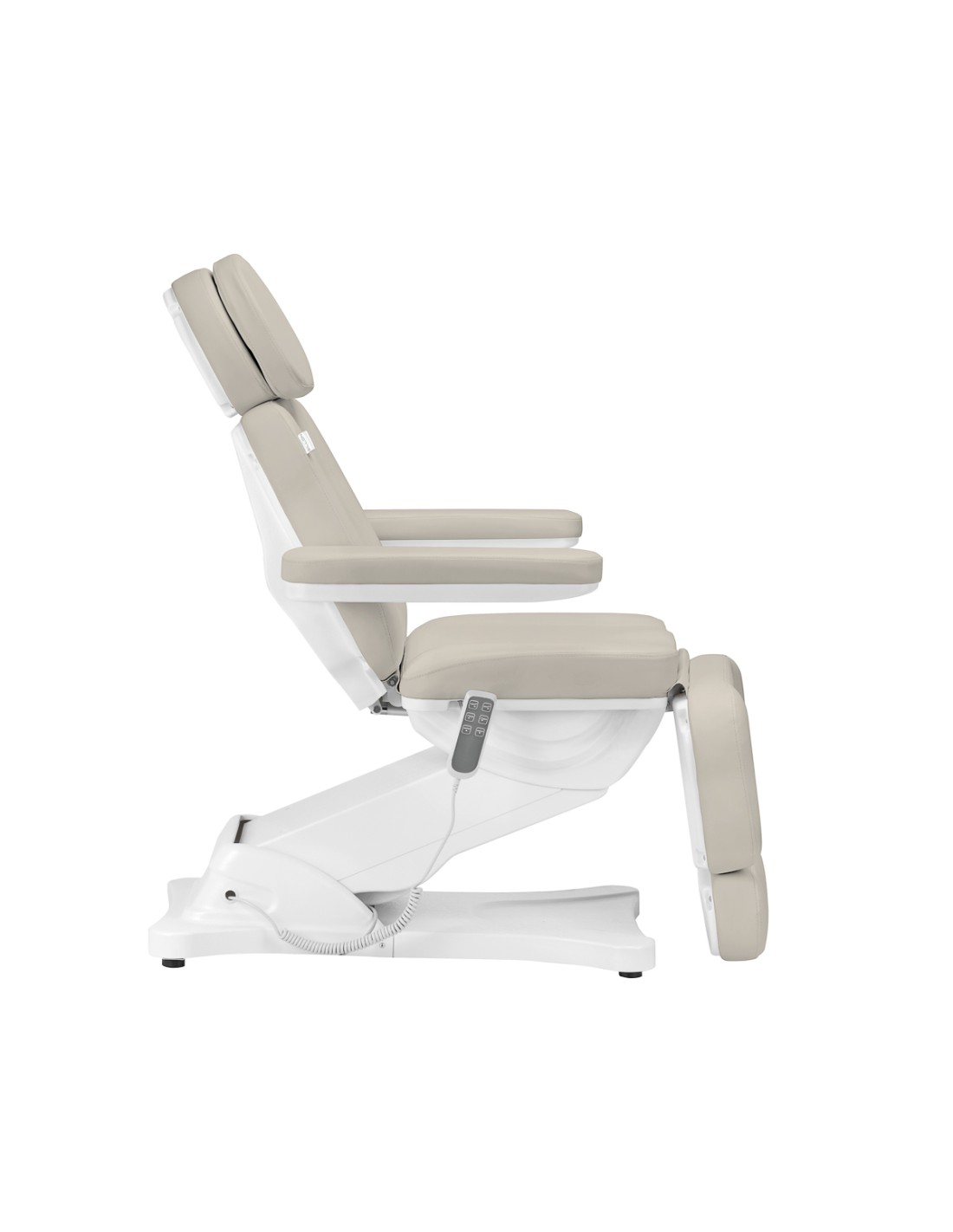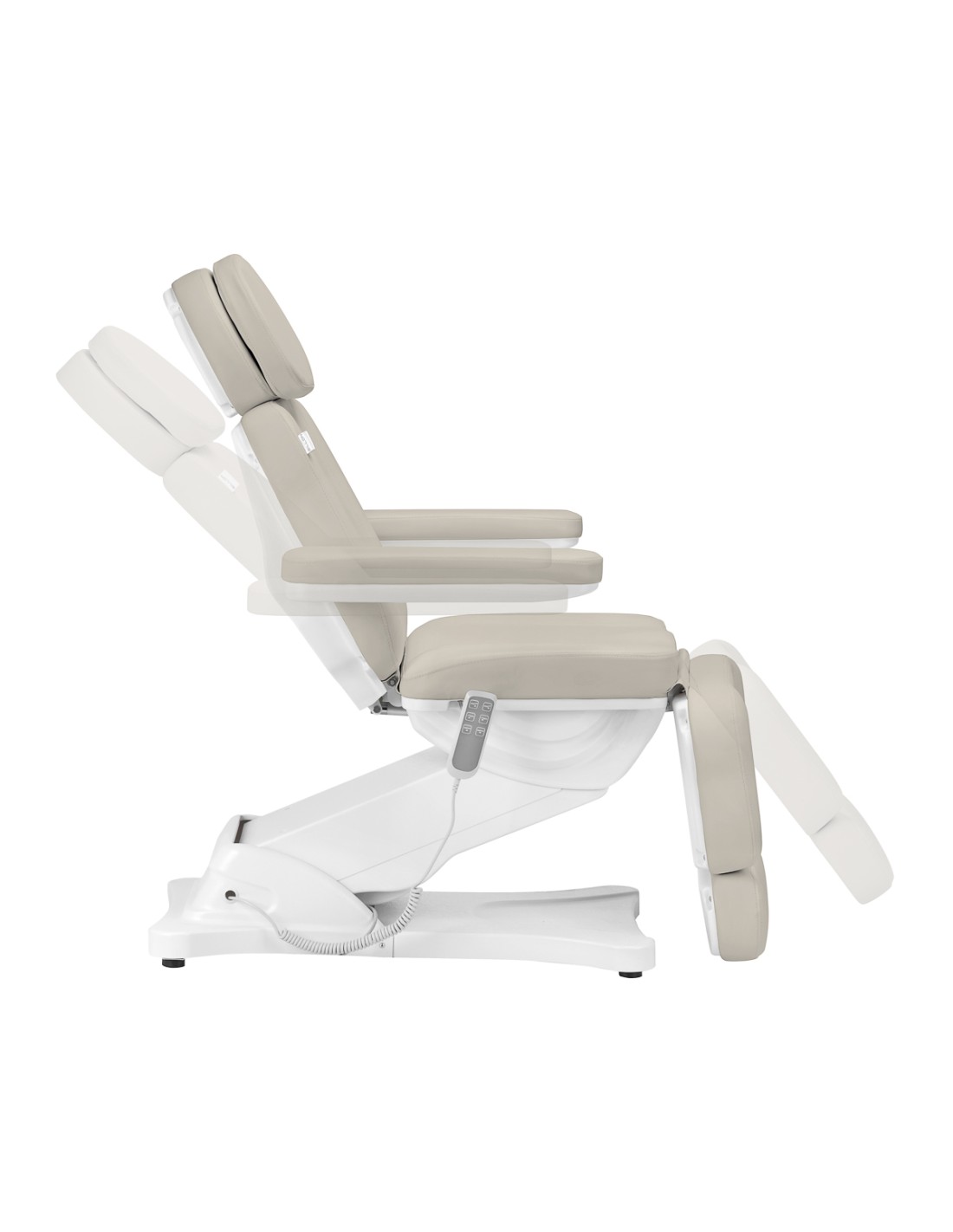 La poltrona cosmetica elettrica Sillon Classic si distingue per l'aspetto semplice, il funzionamento intuitivo e la versatilità. È dotata di 3 attuatori controllati da un telecomando a filo. Si distingue per la sua seduta ergonomica e la possibilità di regolarla in base alle esigenze individuali, che la rendono ideale per molti studi specialistici.