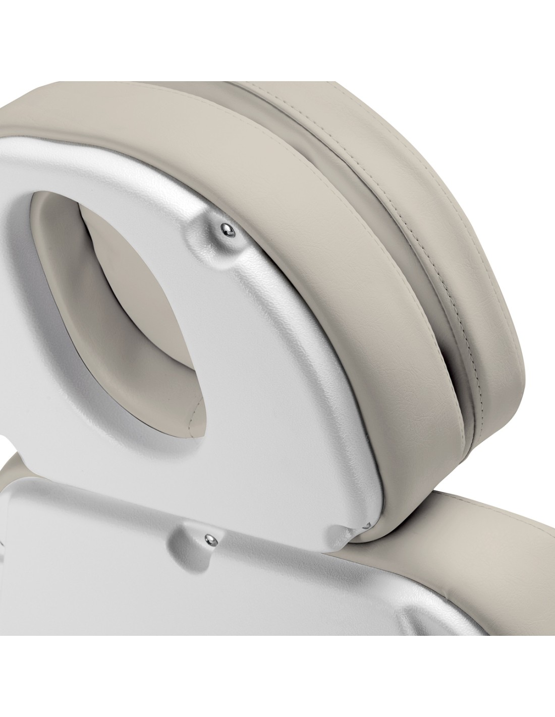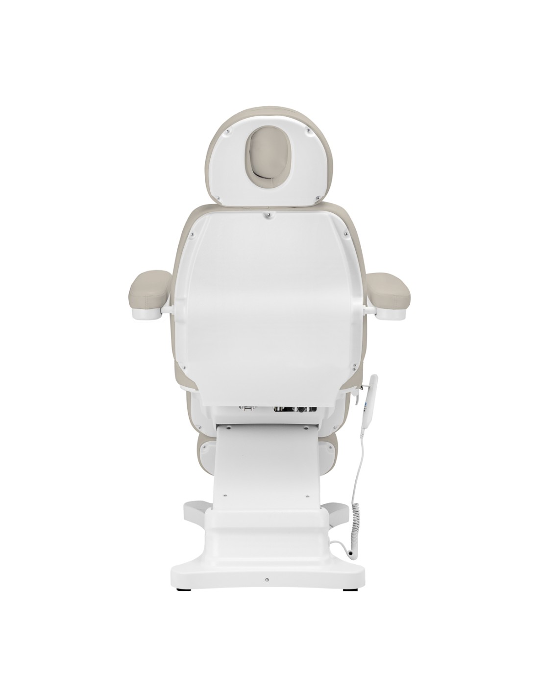 La poltrona è imbottita di schiuma sagomata e rivestita di pelle sintetica piacevole al tatto nei toni del beige. Il materiale utilizzato rende l'apparecchiatura facile da pulire, oltre che resistente all'umidità e a disinfettanti selezionati. La solida base in materiale resistente nei toni del bianco garantisce la stabilità durante il trattamento. Gli orli opportunamente sagomati conferiscono alla poltrona un aspetto elegante e rendono la seduta ergonomica. Il design minimalista e semplice e i colori classici permettono di inserirla in qualsiasi ambiente.