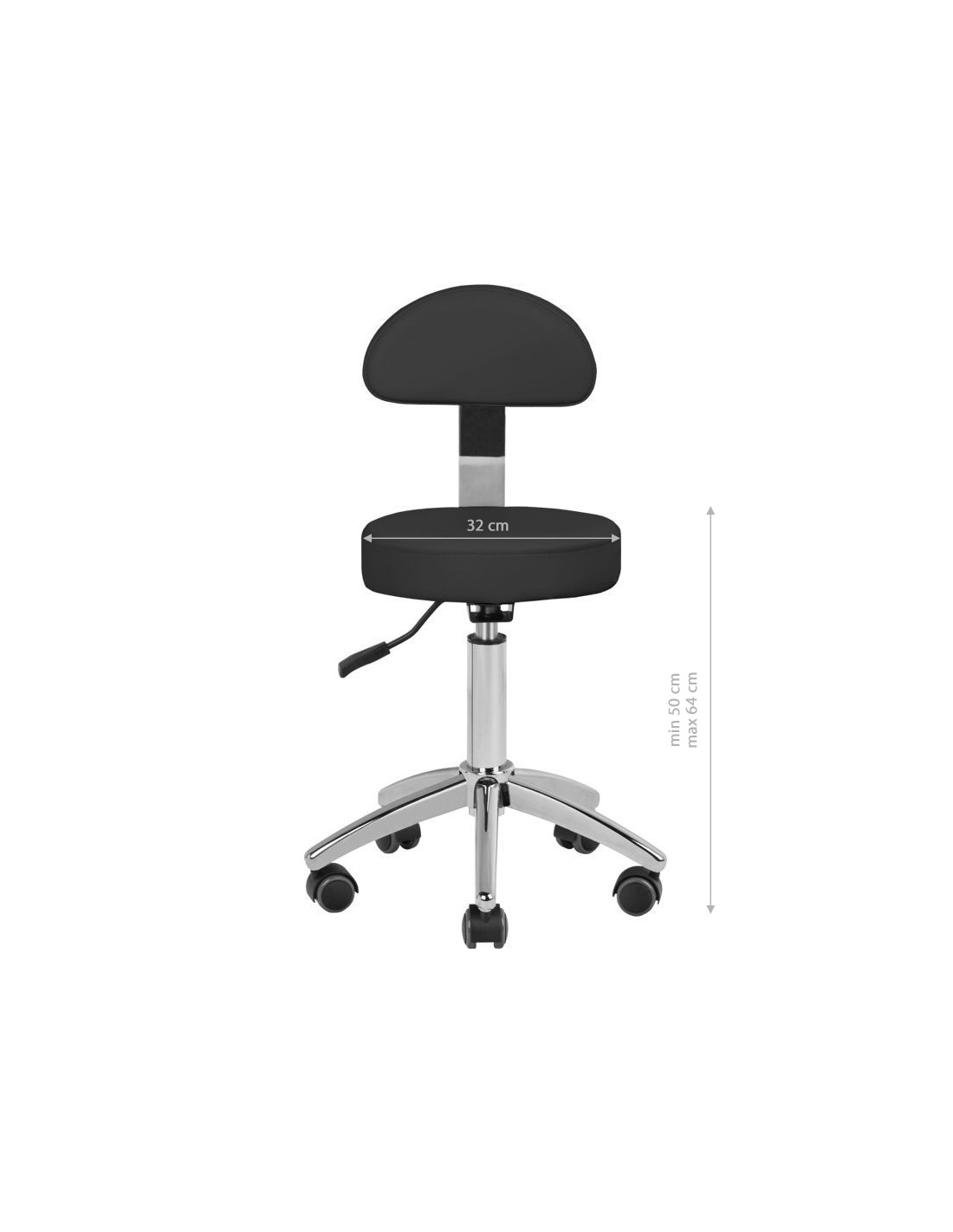 Il pratico sgabello cosmetico AM-304 consente di eseguire comodamente tutti i tipi di trattamenti cosmetici. Montato su un resistente cilindro idraulico, consente di regolare l'altezza in qualsiasi momento. La base a cinque razze garantisce stabilità, mentre le rotelle gommate consentono di spostare facilmente il mobile per lavorare comodamente. Anche lo schienale può essere facilmente rimosso per una maggiore libertà di movimento. Queste soluzioni consentono di adattare lo sgabello alle proprie esigenze e al trattamento che si sta effettuando in quel momento. Grazie al design semplice e ai colori classici, si inserisce perfettamente in qualsiasi ambiente.
