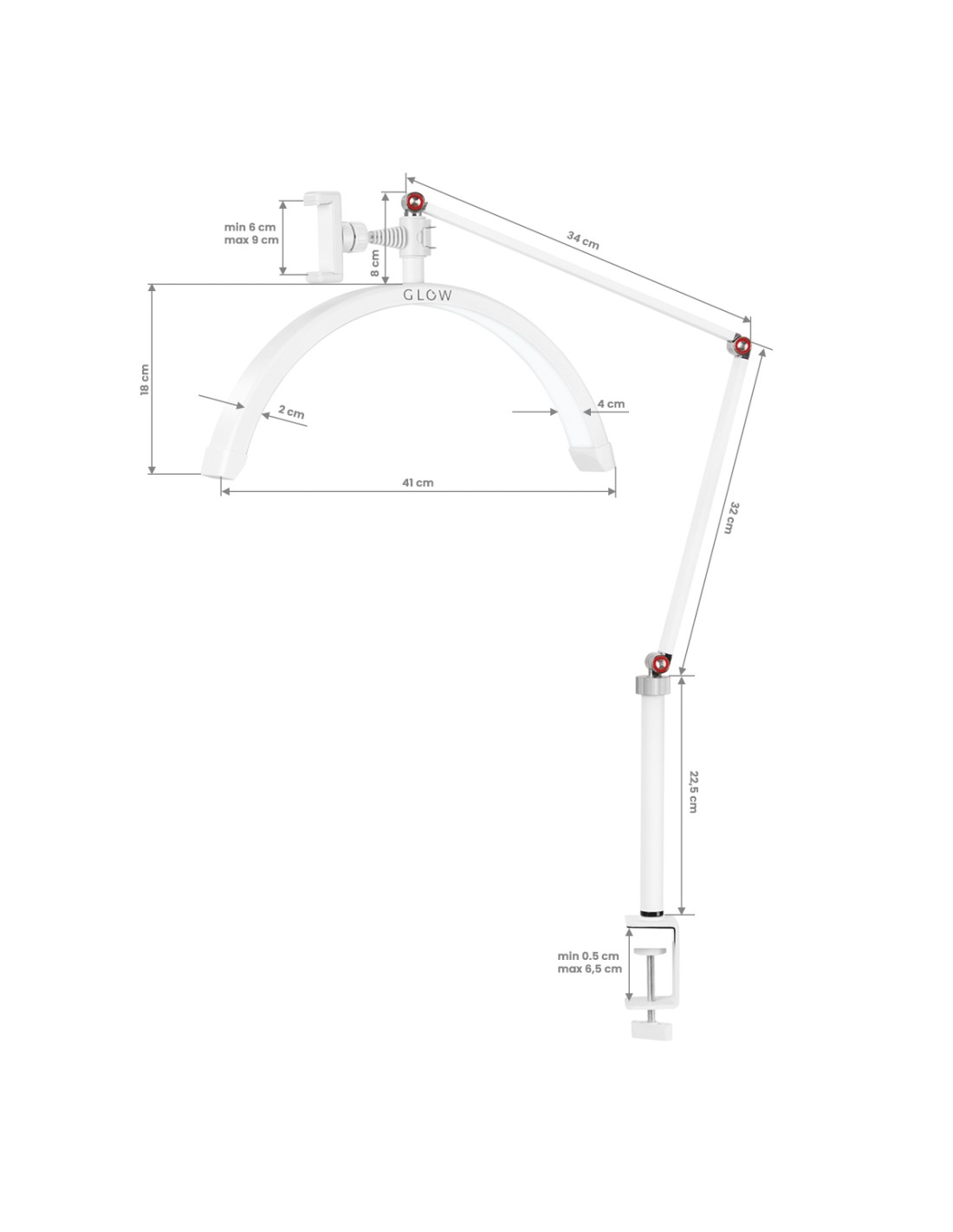 La lampada per trattamenti da bancoGlow MX3 è caratterizzata da un'esclusiva testa a forma di arco che fornisce un'illuminazione eccellente per i trattamenti che richiedono precisione. Può essere utilizzata in molti studi specialistici dove la luce giusta ha un impatto significativo sulla qualità dei servizi eseguiti, come l'estensione delle ciglia, lo styling delle unghie, i tatuaggi, i trattamenti estetici o il make-up. È utile anche per scattare fotografie o registrare video.