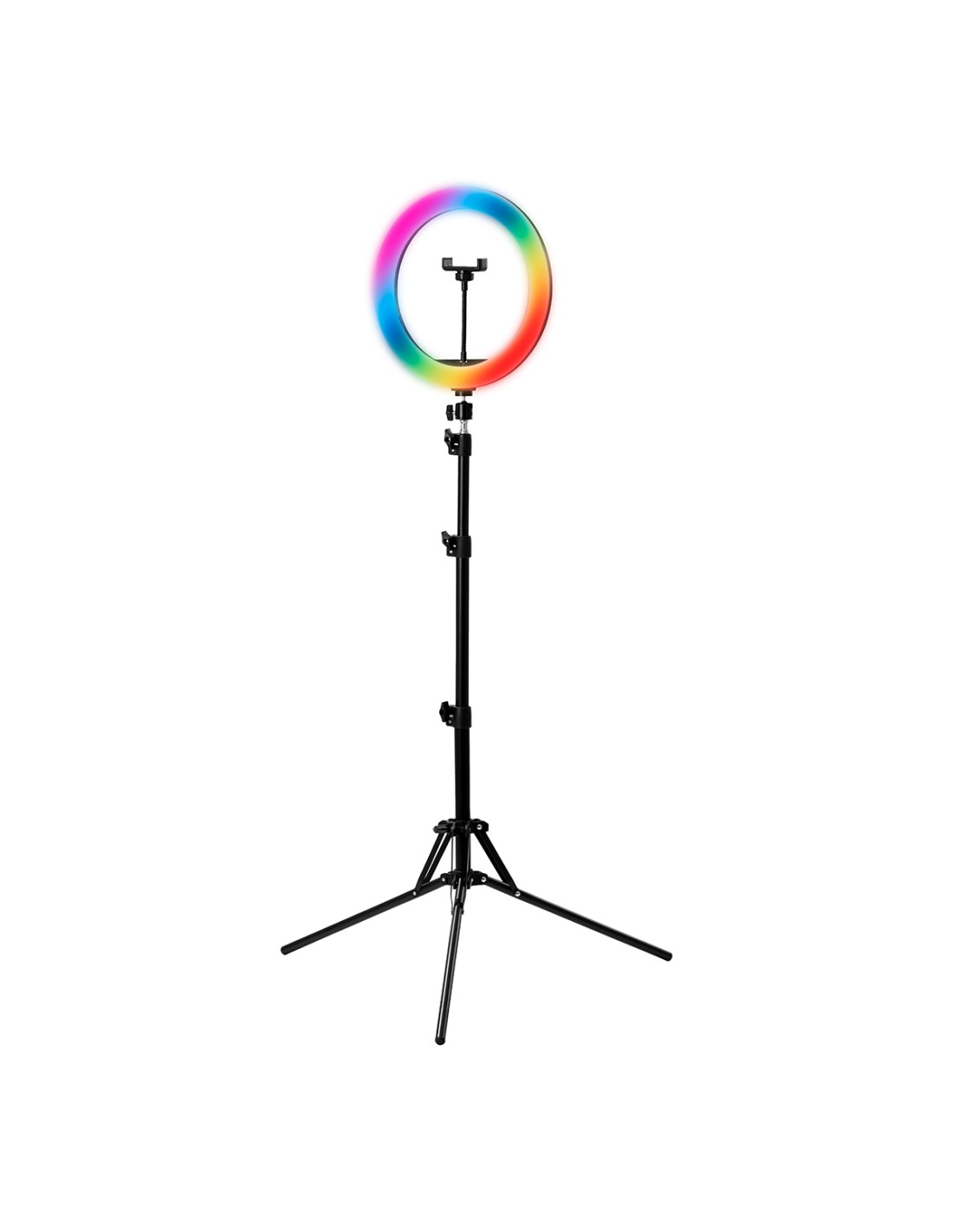 Il kit comprende: luce anulare, cavo di alimentazione USB, caricatore di rete, componenti del treppiede, istruzioni, supporto per telefono.