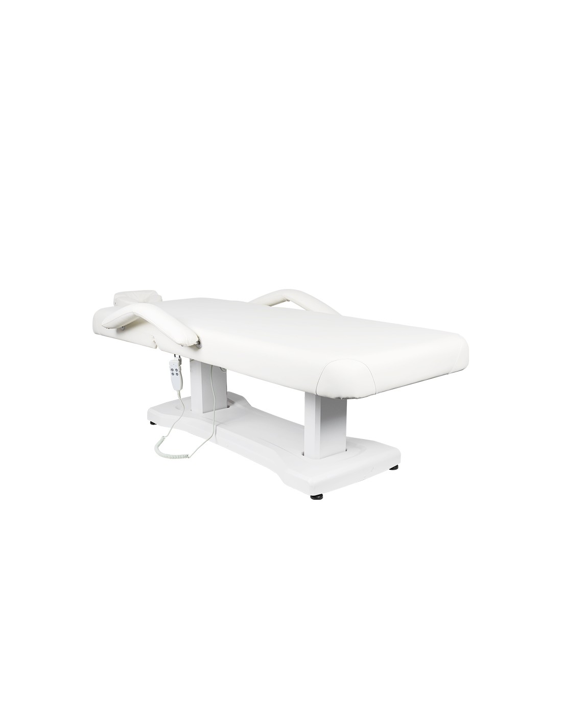Il lettino cosmetico elettrico è regolabile in altezza in un'ampia gamma che va da 58 a 80 cm. Lo schienale e l'altezza sono regolabili tramite telecomando. Allo schienale è fissato un poggiatesta con foro per il viso. Il mobile è ampio (75 cm), con un materasso spesso e molto confortevole. Il divano è molto stabile. Ha un rivestimento in ecopelle di alta qualità.