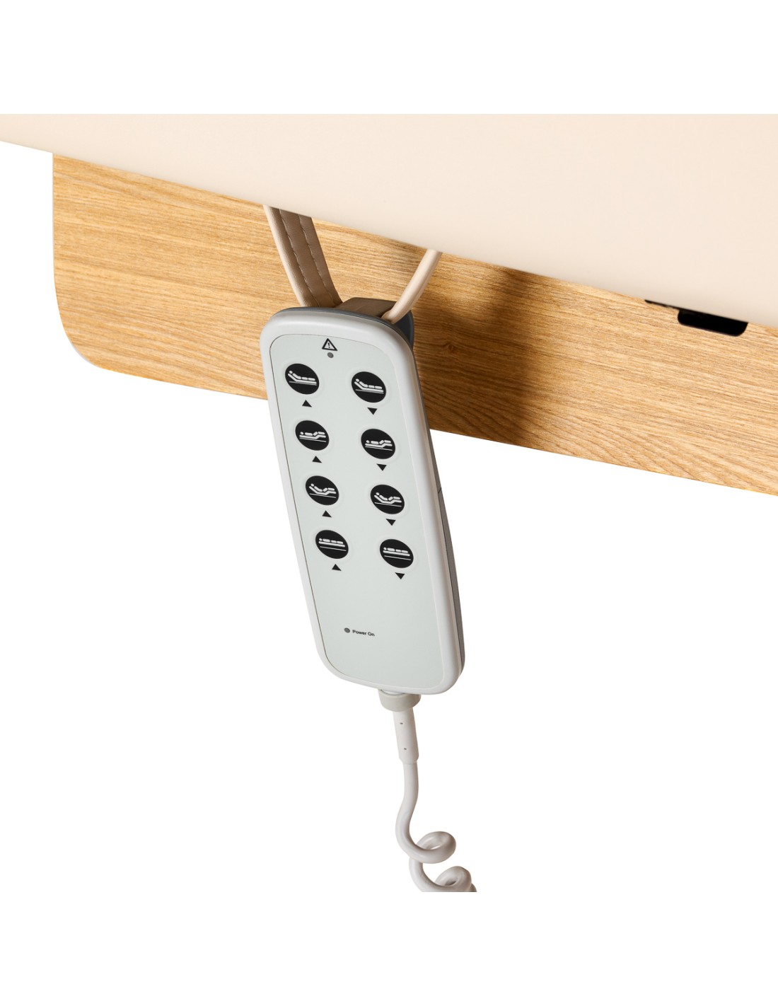Il modello è dotato di regolazione elettrica dell'altezza nell'intervallo 52-102 cm e dell'angolo di inclinazione dello schienale e della parte poggiapiedi, consentendo un adattamento preciso della posizione al tipo di trattamento eseguito. L'ampia gamma di regolazioni facilita l'adozione di una posizione di lavoro ergonomica , indipendentemente dall'altezza del professionista o dalla specificità della procedura. Il controllo avviene tramite un pratico telecomando che garantisce una gestione rapida e intuitiva di tutte le funzioni. I pulsanti chiaramente contrassegnati consentono una regolazione precisa dei singoli segmenti, il che si traduce in comodità d'uso e fluidità di lavoro in studio. La possibilità di regolare contemporaneamente lo schienale e il poggiapiedi con un solo pulsante consente di impostare rapidamente la posizione seduta, semi-sdraiata o sdraiata, senza interrompere il trattamento. La modifica fluida delle impostazioni favorisce l'ergonomia del lavoro e aumenta il comfort del cliente in ogni fase della procedura.