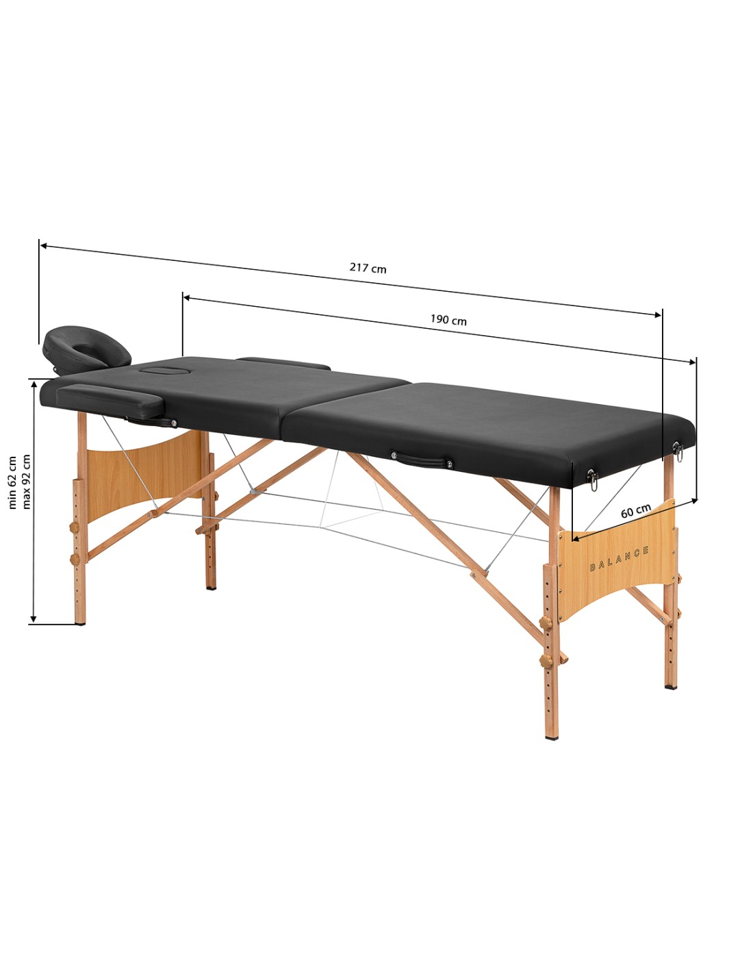 Balance Lettino da massaggio pieghevole in legno 2 segmenti nero