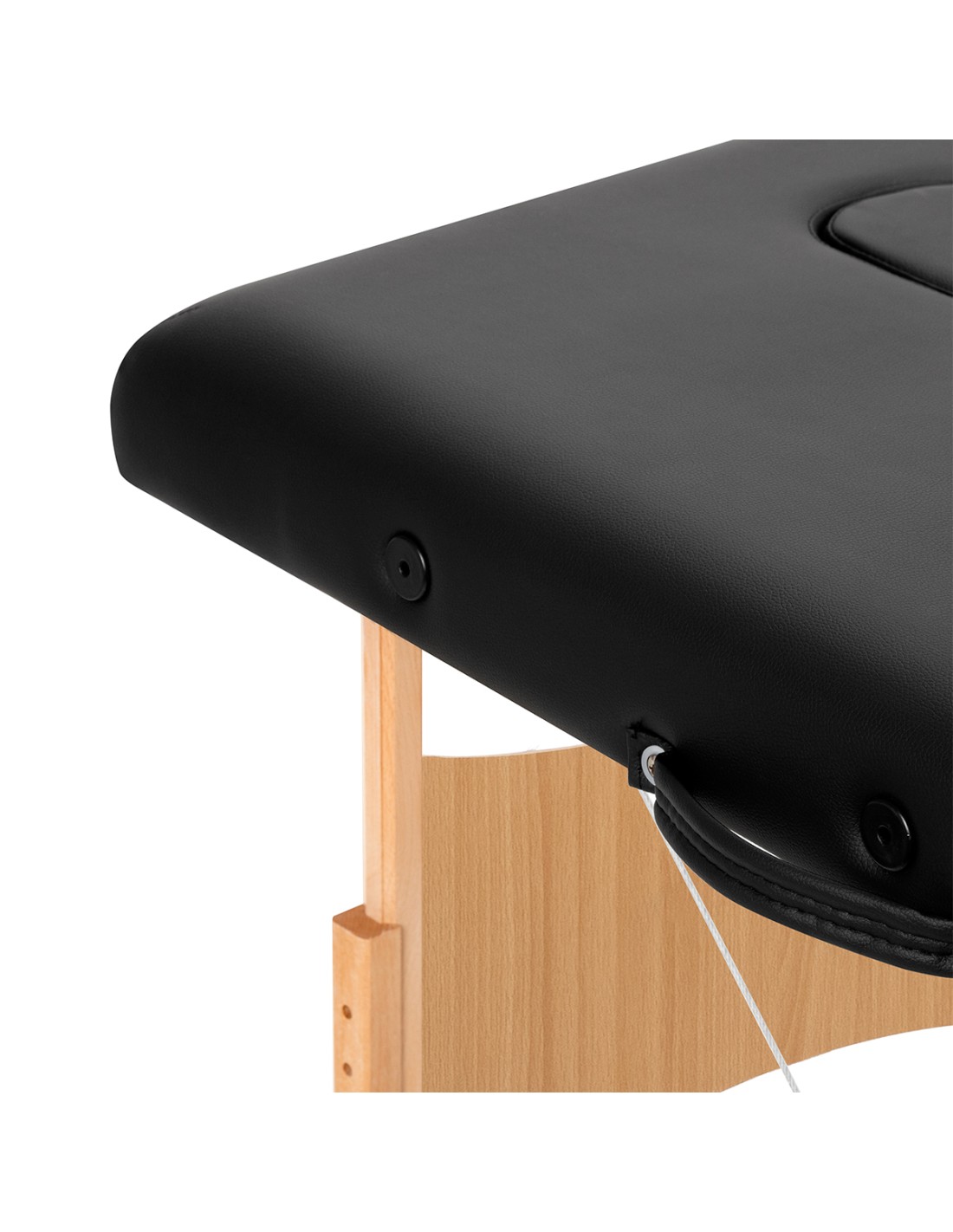 L’altezza del lettino può essere adattata alla statura e alle esigenze individuali dell’operatore grazie alle manopole situate sulle gambe del lettino nel range di 62–92 cm. Ogni gamba è composta da due elementi perfettamente combinati e, dopo aver scelto l’altezza desiderata, è sufficiente avvitare gli elementi negli appositi fori affinché il lettino rimanga stabile. Inoltre, la struttura del telaio è stabilizzata da cavi metallici, rendendo il lettino da massaggio solido e ideale per una vasta gamma di trattamenti.