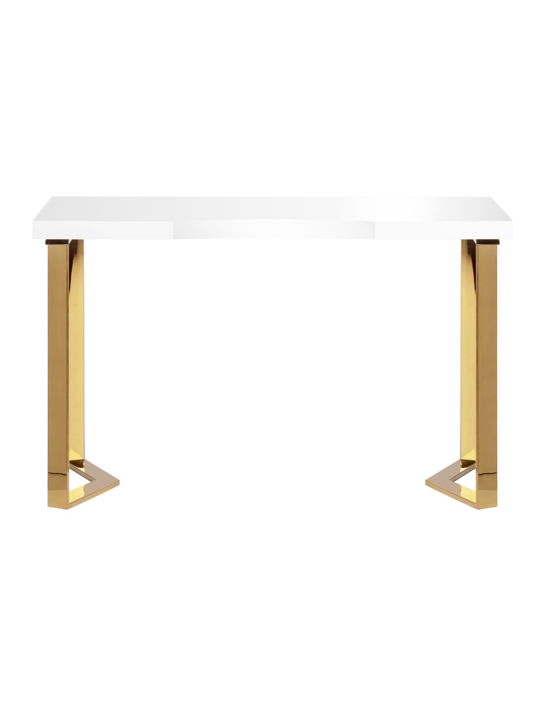 La forma moderna della scrivania, che combina un piano bianco con gambe geometriche dorate, aggiunge leggerezza ed eleganza agli interni. Grazie alla sua forma compatta ma elegante, la scrivania è perfetta sia per i piccoli uffici che per gli interni più grandi e moderni.