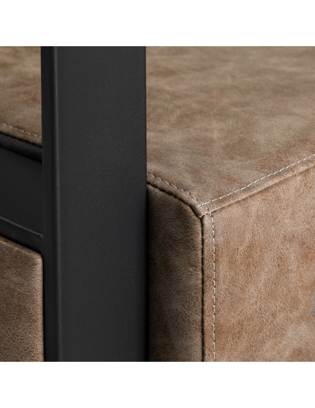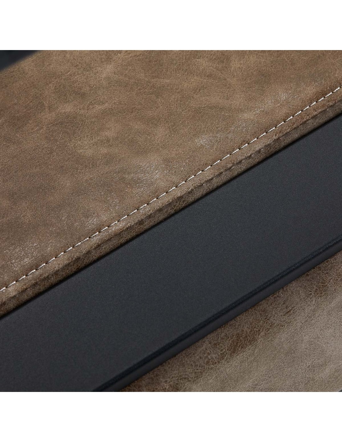 L'imbottitura in schiuma durevole e resistente alla deformazione e il rivestimento in pelle sintetica piacevole al tatto con una struttura specifica garantiscono la durata del mobile e il suo utilizzo confortevole per lungo tempo. Inoltre, lo rendono resistente all'umidità, durevole e facile da pulire. Il rivestimento nei toni del marrone, insieme a interessanti elementi visivi nei toni del nero, conferisce un carattere unico. L'attrezzatura si distingue per il design modernista, che rende la poltrona perfetta per molti soggiorni arredati in stile moderno.