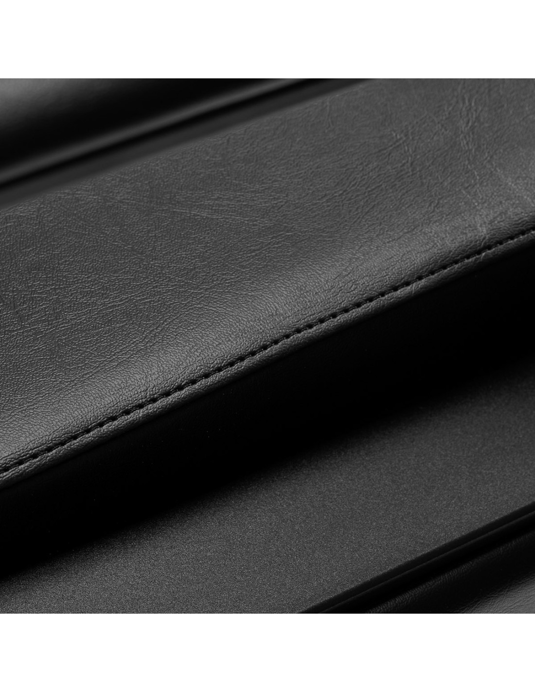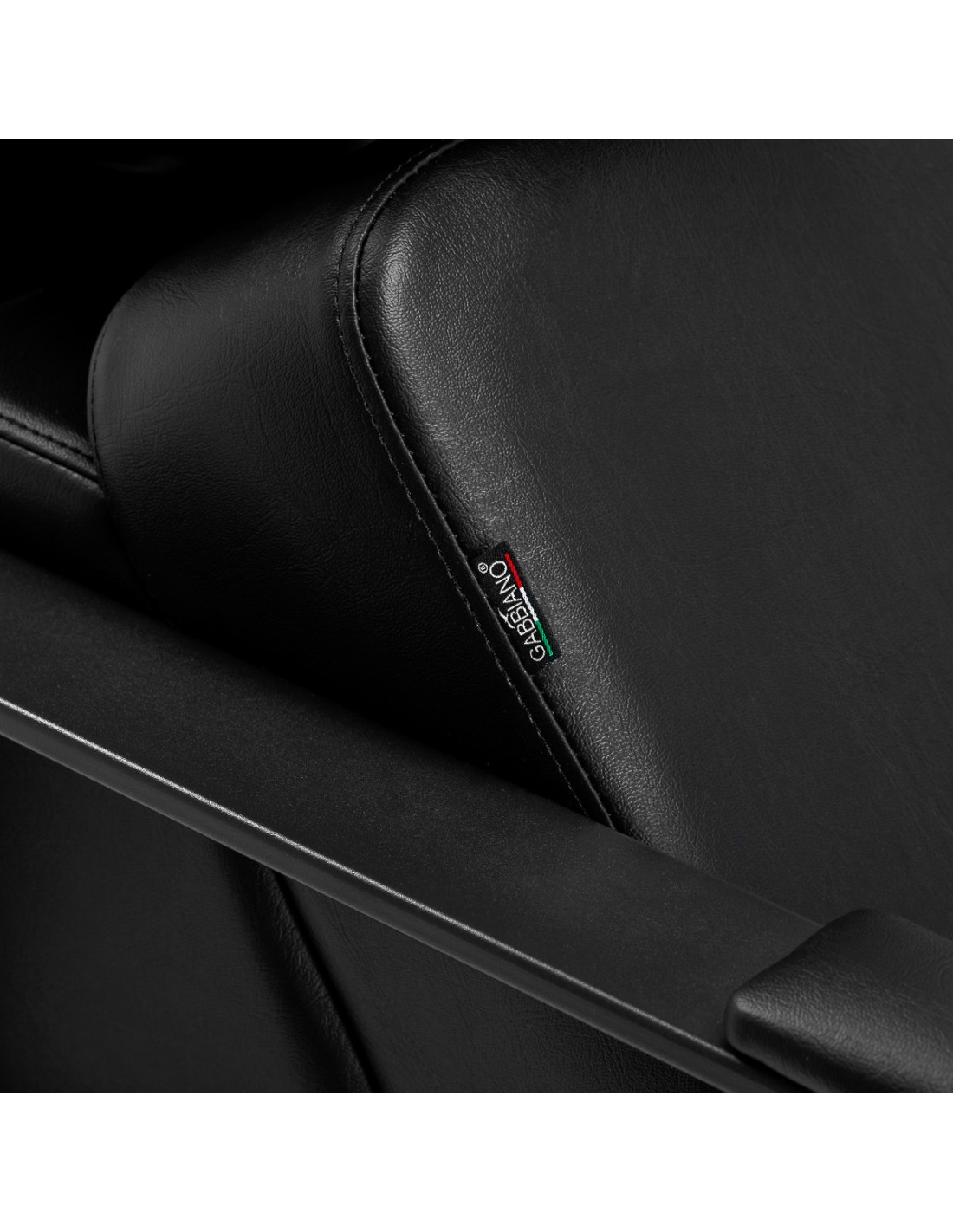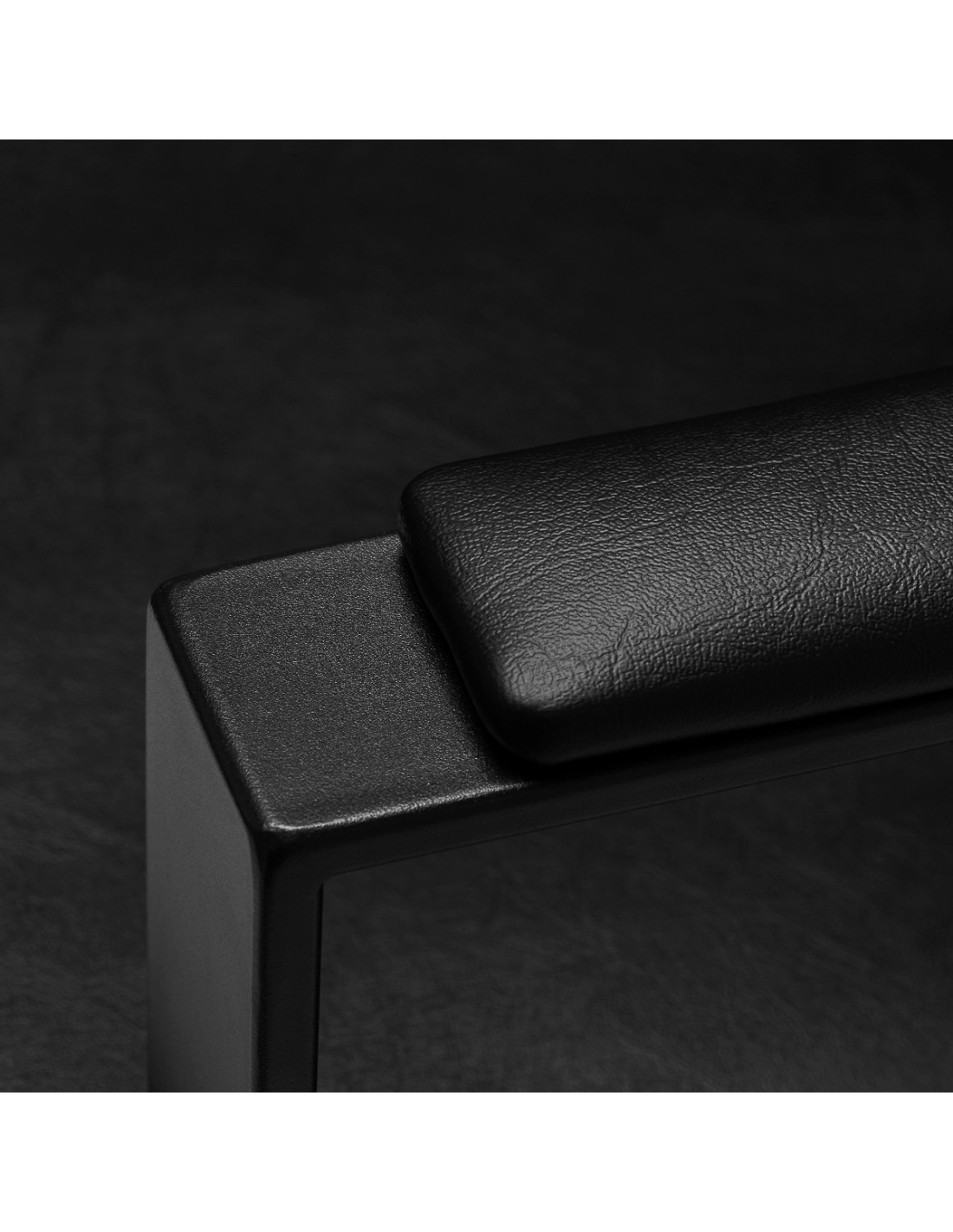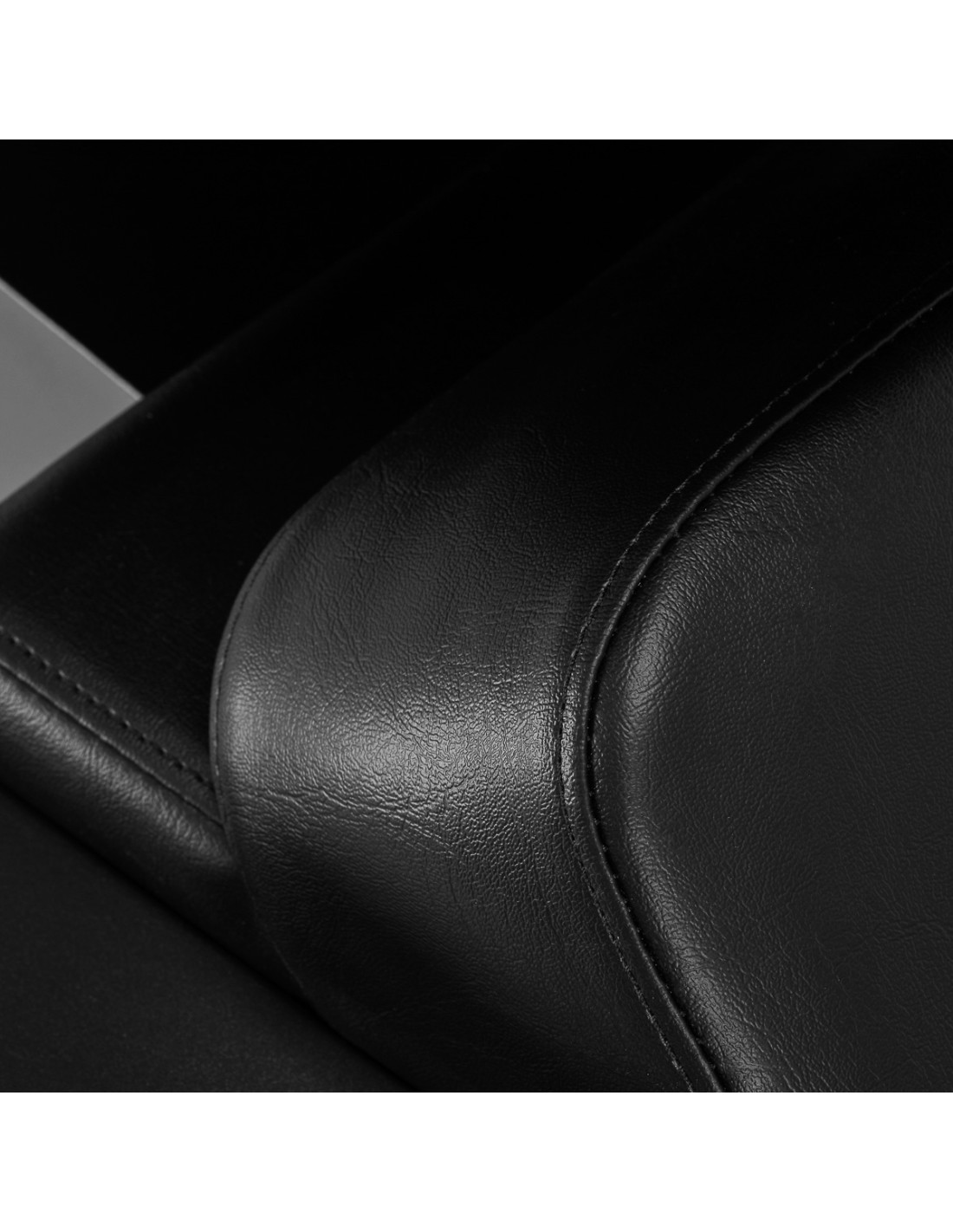 La poltrona opportunamente profilata e imbottita di schiuma resistente garantisce un elevato comfort d'uso, mentre i braccioli geometrici, parzialmente imbottiti, consentono di posizionare correttamente le spalle del cliente. Lo schienale, posizionato con un'angolazione ottimale, favorisce un eccellente sostegno della colonna vertebrale. Il rivestimento in pelle sintetica nei toni del nero garantisce una lunga durata e una facile pulizia. Il design originale ed elegante dell'autolavaggio aggiunge un tocco unico agli interni. Le gambe aggiungono stabilità e sottolineano in modo sottile il carattere elegante dell'autolavaggio. La dotazione completa di accessori in finitura nera opaca comprende un miscelatore, una doccetta e tubi flessibili dedicati per garantire un set completo di strumenti per il lavoro.