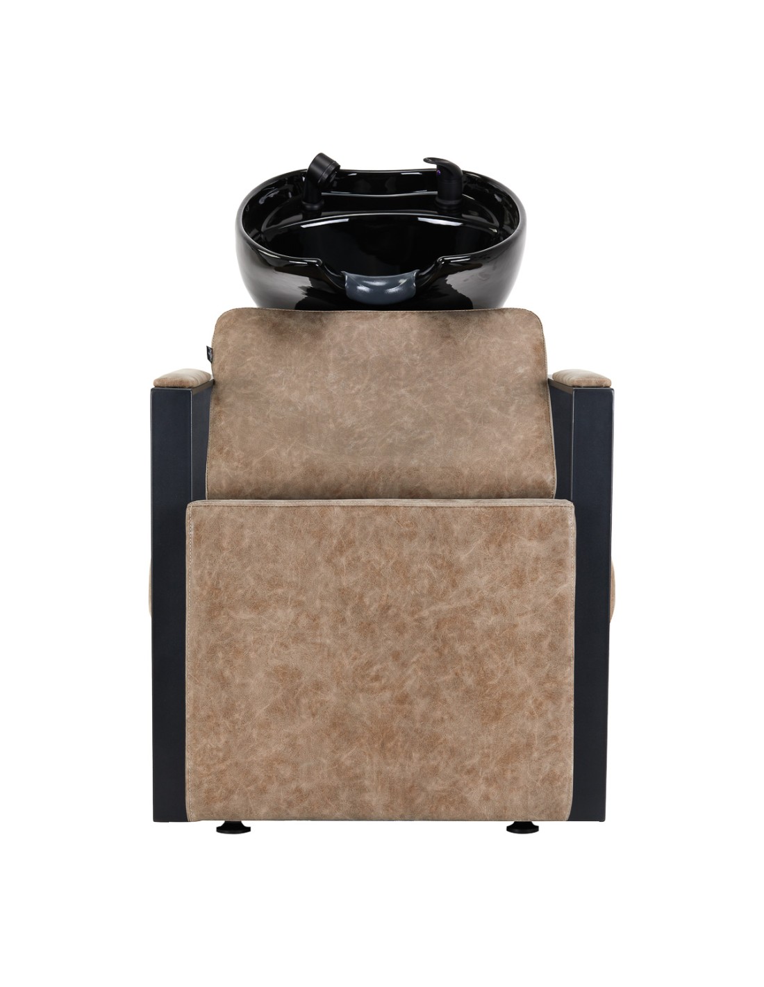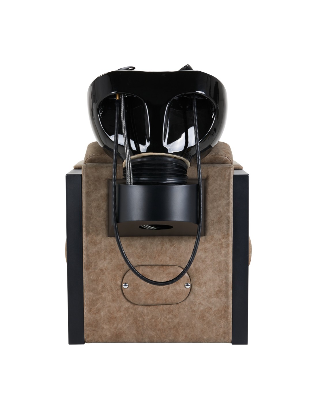 La poltrona opportunamente profilata e imbottita di schiuma resistente garantisce un elevato comfort d'uso, mentre i braccioli geometrici, parzialmente imbottiti, consentono di posizionare correttamente le spalle del cliente. Lo schienale, posizionato con un'angolazione ottimale, favorisce un eccellente sostegno della colonna vertebrale. Il rivestimento in pelle sintetica nei toni del marrone garantisce una lunga durata e una facile pulizia. Il design originale ed elegante dell'autolavaggio aggiunge un tocco unico agli interni. Le gambe aggiungono stabilità e sottolineano in modo sottile il carattere elegante dell'autolavaggio. La dotazione completa di accessori in finitura nera opaca comprende un miscelatore, una doccetta e tubi flessibili dedicati per garantire un set completo di strumenti per il lavoro.