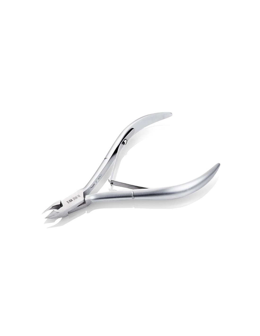 Pinze professionali per cuticole in acciaio inox con molla a doppio lato, progettate per una rifinitura precisa delle cuticole. Disponibile nelle misure 12 (5 mm), 14 (6 mm), 12 (7 mm). Grazie al metodo di giunzione Lap Joint (che riduce al minimo l'usura del materiale e la possibilità di gioco rispetto ad altri metodi di giunzione), le pinze garantiscono un lavoro perfetto per lungo tempo. Le pinze sono dotate di un'impugnatura appositamente sagomata (di tipo classico) per garantire alta precisione, comfort e praticità.