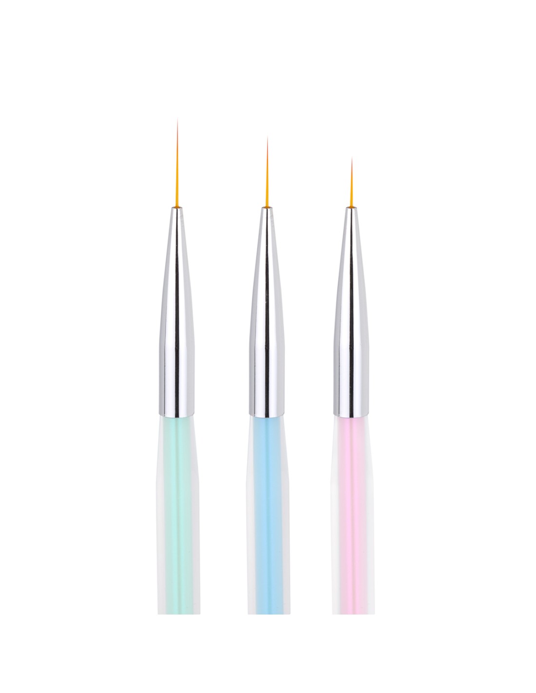 Un set di pennelli per la decorazione delle unghie è lo strumento perfetto per ogni appassionata di nail art. Il set è composto da tre pennelli con setole di lunghezza diversa che offrono opzioni precise e varie per la realizzazione di decorazioni creative per unghie. Che preferiate disegni fini, punti, strisce o abbellimenti delicati, questo set di pennelli per nail art vi aiuterà a ottenere risultati perfetti.