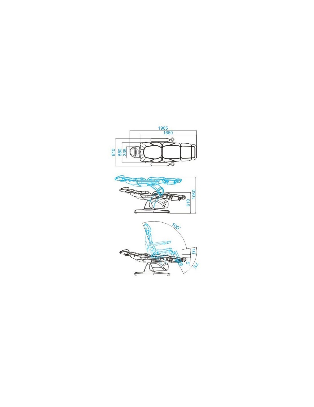 Una moderna poltrona estetica regolabile elettricamente per garantire il comfort durante il trattamento, non solo per i pazienti ma anche per chi lo esegue. I silenziosi motori elettrici consentono una regolazione rapida e confortevole della poltrona.  La poltrona ha una seduta sagomata e molto confortevole, è robusta e molto stabile. I braccioli sollevabili facilitano la seduta dei pazienti. L'ampia gamma di regolazioni verso l'alto e verso il basso consente di adattare l'altezza della poltrona all'altezza della persona che esegue il trattamento e al tipo di trattamento.