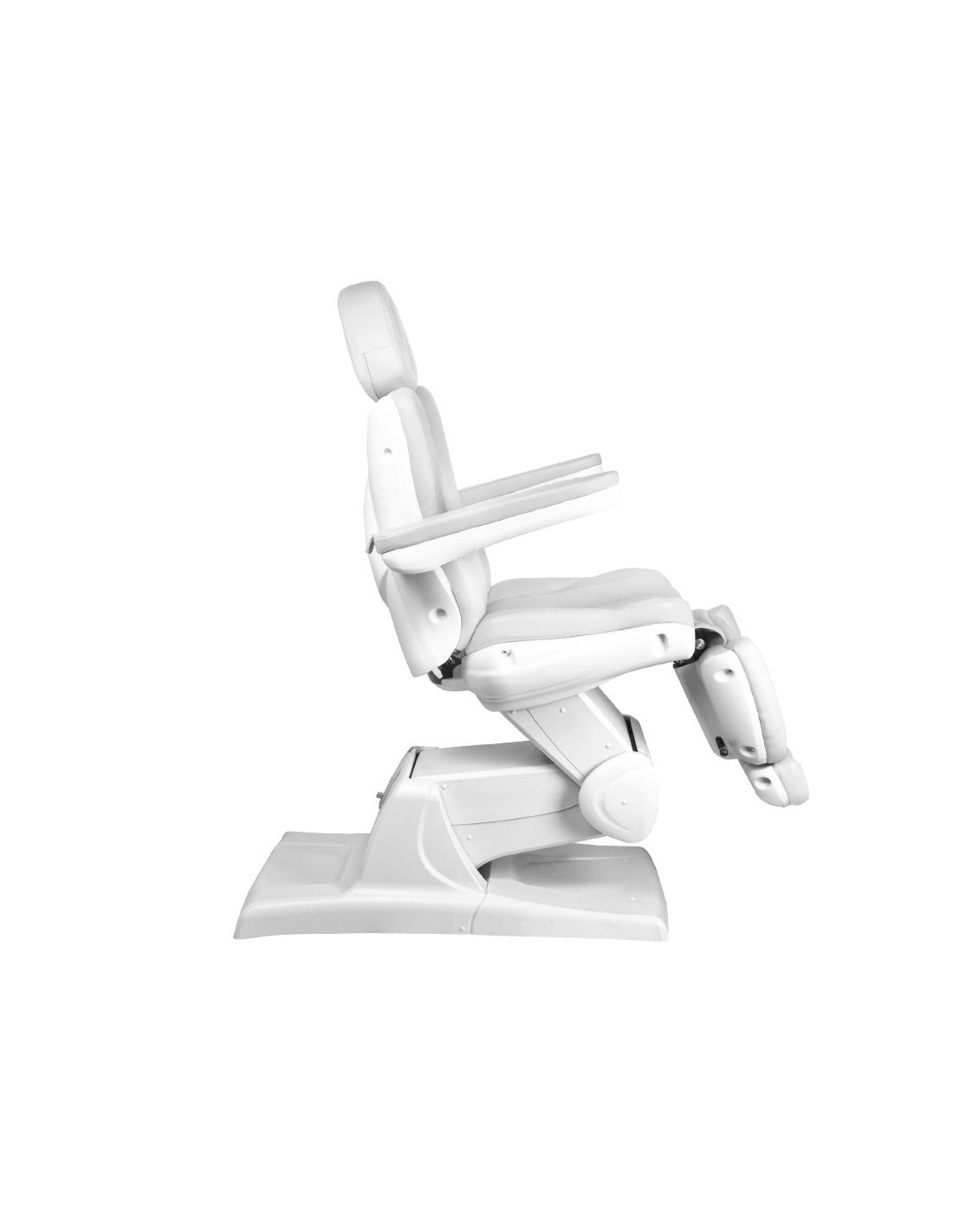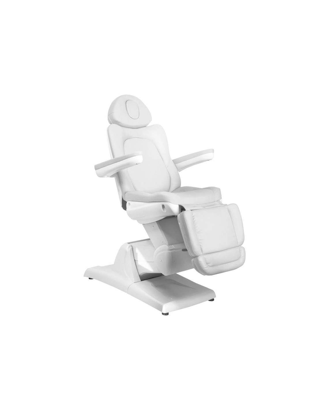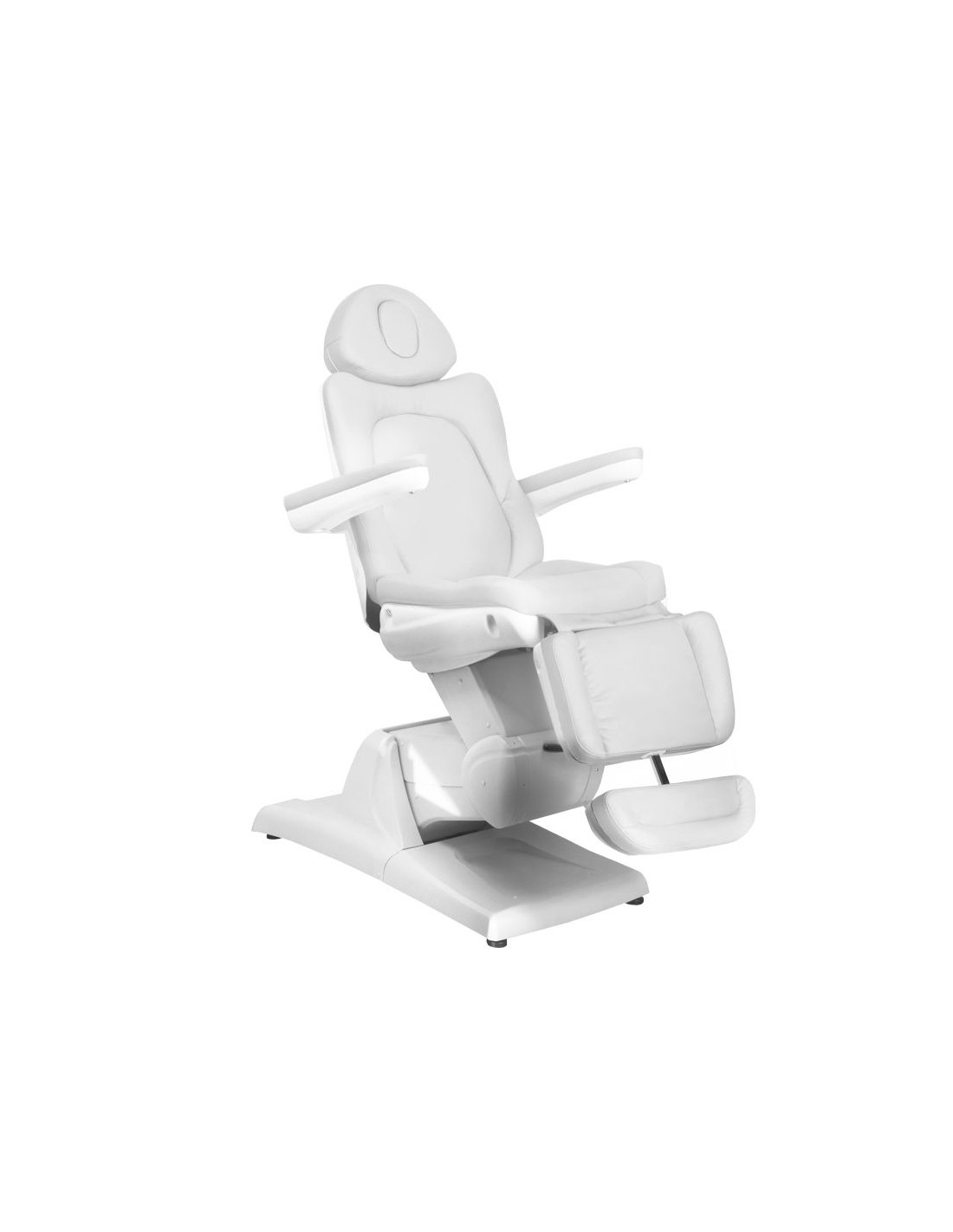Una moderna poltrona estetica regolabile elettricamente per garantire il comfort durante il trattamento, non solo per i pazienti ma anche per chi lo esegue. I silenziosi motori elettrici consentono una regolazione rapida e confortevole della poltrona.  La poltrona ha una seduta sagomata e molto confortevole, è robusta e molto stabile. I braccioli sollevabili facilitano la seduta dei pazienti. L'ampia gamma di regolazioni verso l'alto e verso il basso consente di adattare l'altezza della poltrona all'altezza della persona che esegue il trattamento e al tipo di trattamento.
