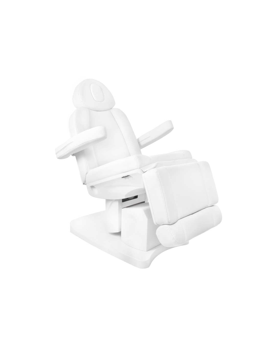 La poltrona estetica elettrica è ideale per centri estetici e SPA. Grazie a motori indipendenti, consente la regolazione della poltrona su 4 piani con l'utilizzo di un telecomando dando la possibilità di effettuare trattamenti per il viso e per il corpo. Con il telecomando è possibile regolare l'altezza della poltrona, l'inclinazione dello schienale e dei poggiapiedi, impostare la seduta in posizione culla e attivare il riscaldamento del materasso.