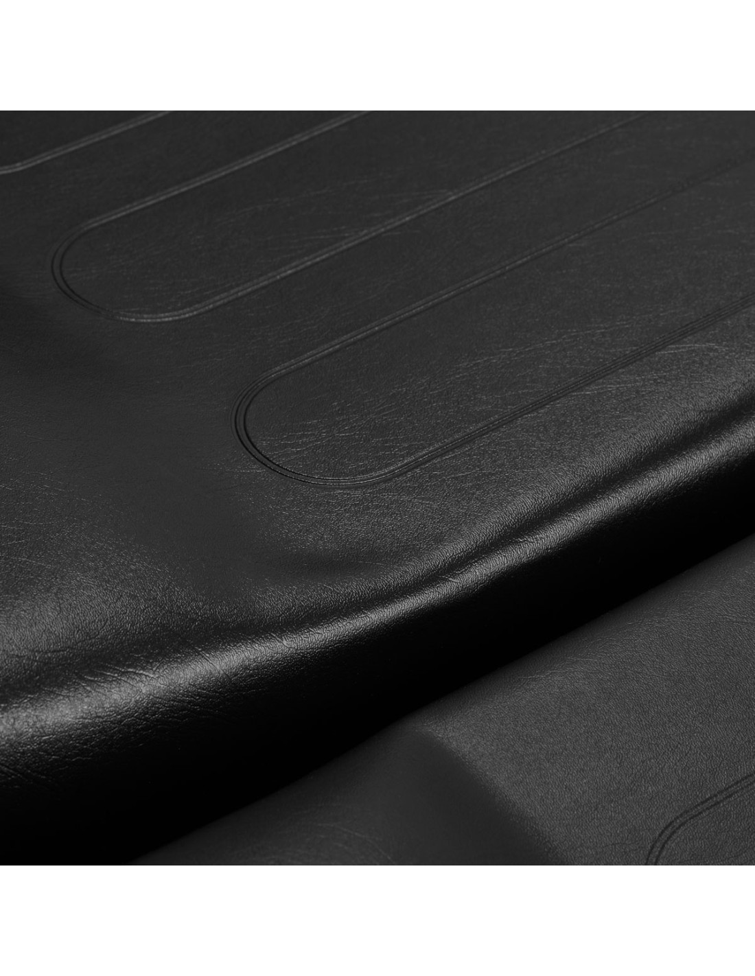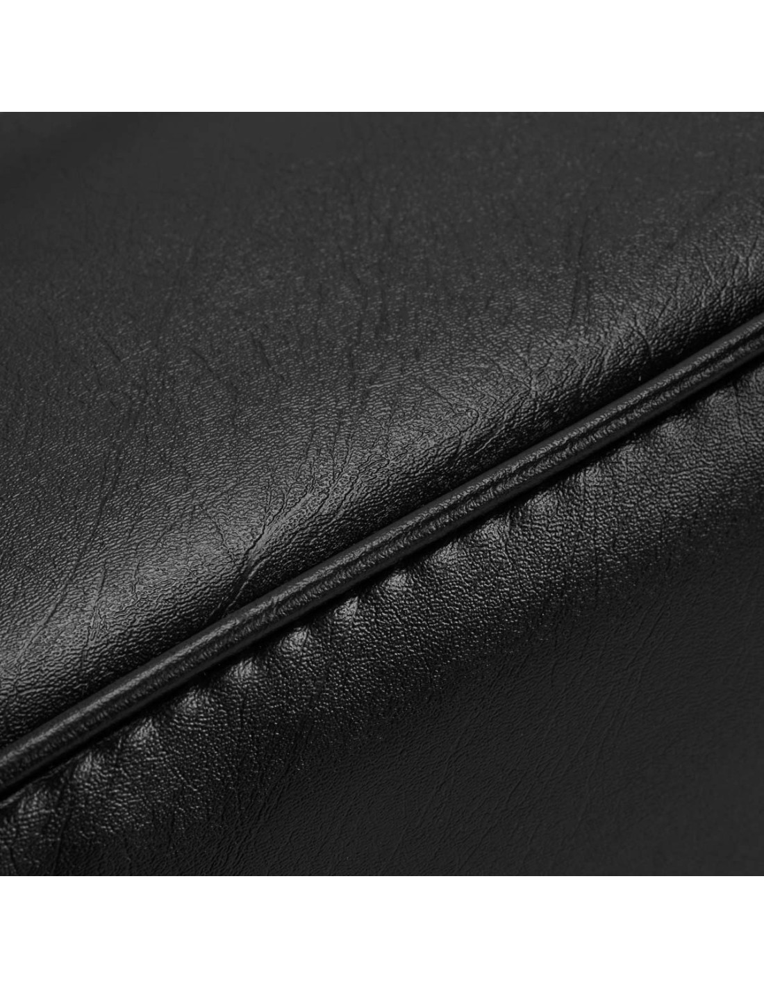 La poltrona è imbottita con schiuma della giusta consistenza e rivestita in similpelle semi-opaca nei toni del nero. Grazie all'uso di questo materiale, l'apparecchiatura è comoda da usare, resistente all'umidità e facile da pulire. Gli orli opportunamente sagomati conferiscono alla seduta una forma ergonomica. La struttura solida garantisce durata e stabilità. Il design semplice e i colori classici permettono di adattarlo a qualsiasi interno.