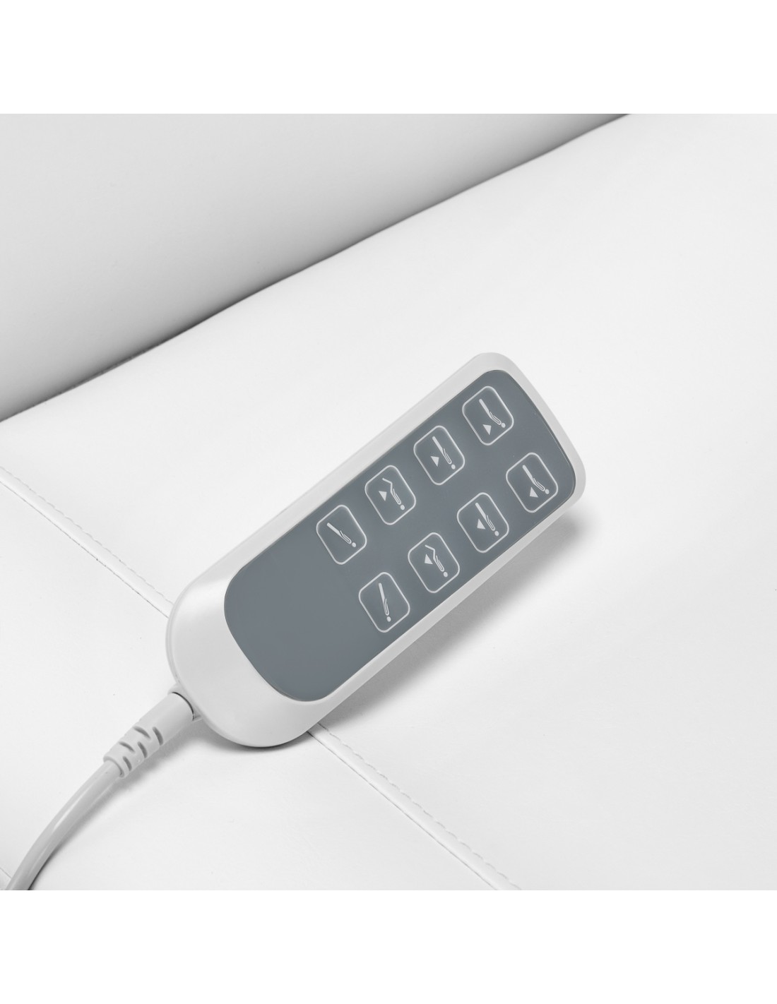 La poltrona cosmetica elettrica Sillon Classic si distingue per l'aspetto semplice, il funzionamento intuitivo e la versatilità. È dotata di 4 attuatori controllati da un telecomando a filo. Si distingue per la sua seduta ergonomica e la possibilità di regolarla in base alle esigenze individuali, che la rendono ideale per molti studi specialistici.