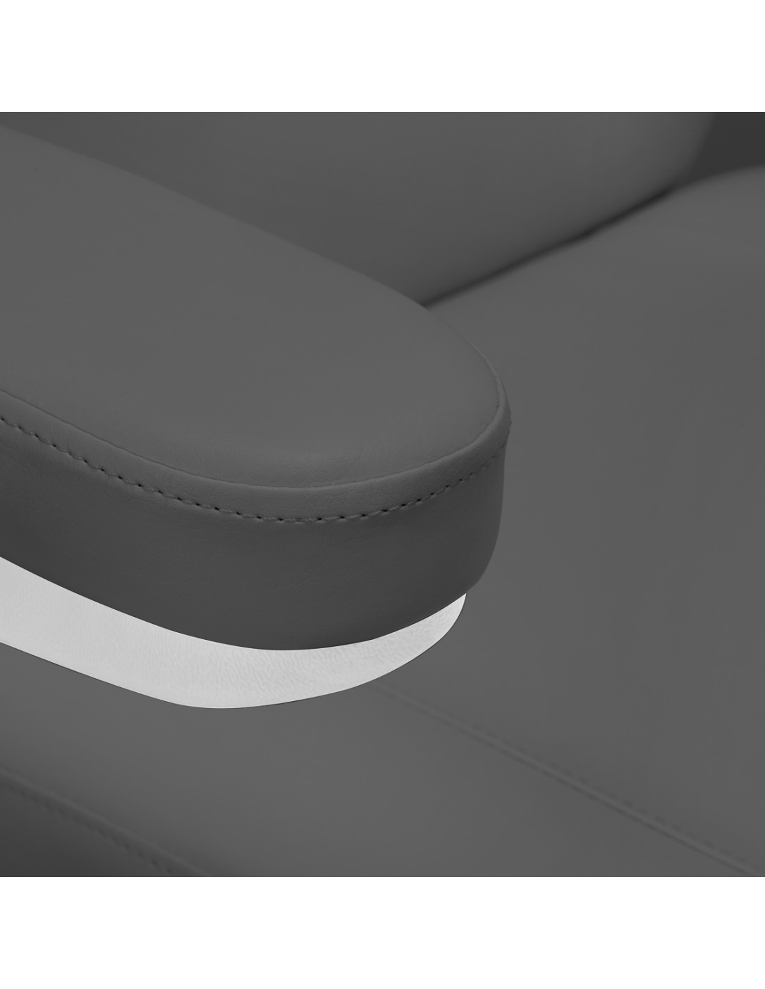 La poltrona è imbottita di schiuma sagomata e rivestita di pelle sintetica piacevole al tatto nei toni del grigio. Il materiale utilizzato rende l'apparecchiatura facile da pulire, oltre che resistente all'umidità e a disinfettanti selezionati. La solida base in materiale resistente nei toni del bianco garantisce la stabilità durante il trattamento. Gli orli opportunamente sagomati conferiscono alla poltrona un aspetto elegante e rendono la seduta ergonomica. Il design minimalista e semplice e i colori classici permettono di inserirla in qualsiasi ambiente.