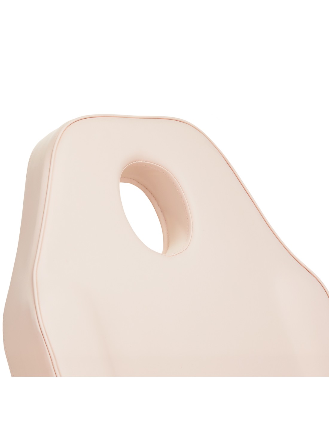 Braccioli robusti e morbidi garantiscono all'utente un sostegno adeguato. Questi elementi, divisi a metà, sono mobili, quindi si adattano bene quando si cambia la posizione dello schienale, e possono anche essere facilmente rimossi. Nascosta sotto un cuscino opportunamente sagomato, un'apertura nel poggiatesta rende la poltrona ideale per i trattamenti del viso e della schiena.