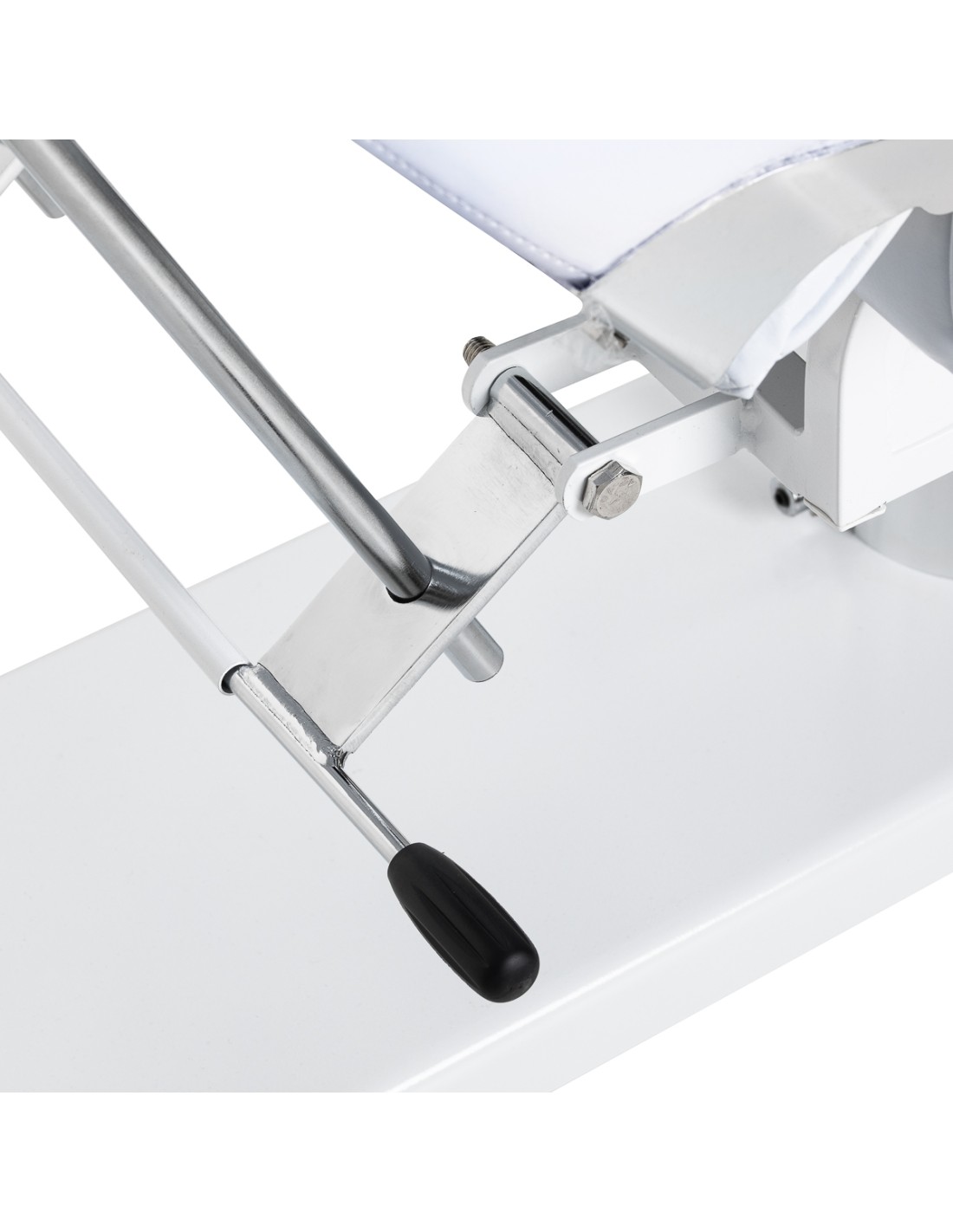 Grazie a speciali leve, è possibile regolare in continuo gli angoli di posizionamento del poggiapiedi e dello schienale. Ciò consente di adattare in modo ottimale le impostazioni alle esigenze individuali, per un trattamento e un comfort corretti e confortevoli. La poltrona può essere estesa fino alla posizione reclinabile, il che aumenta notevolmente la sua funzionalità per i trattamenti del viso e del corpo.