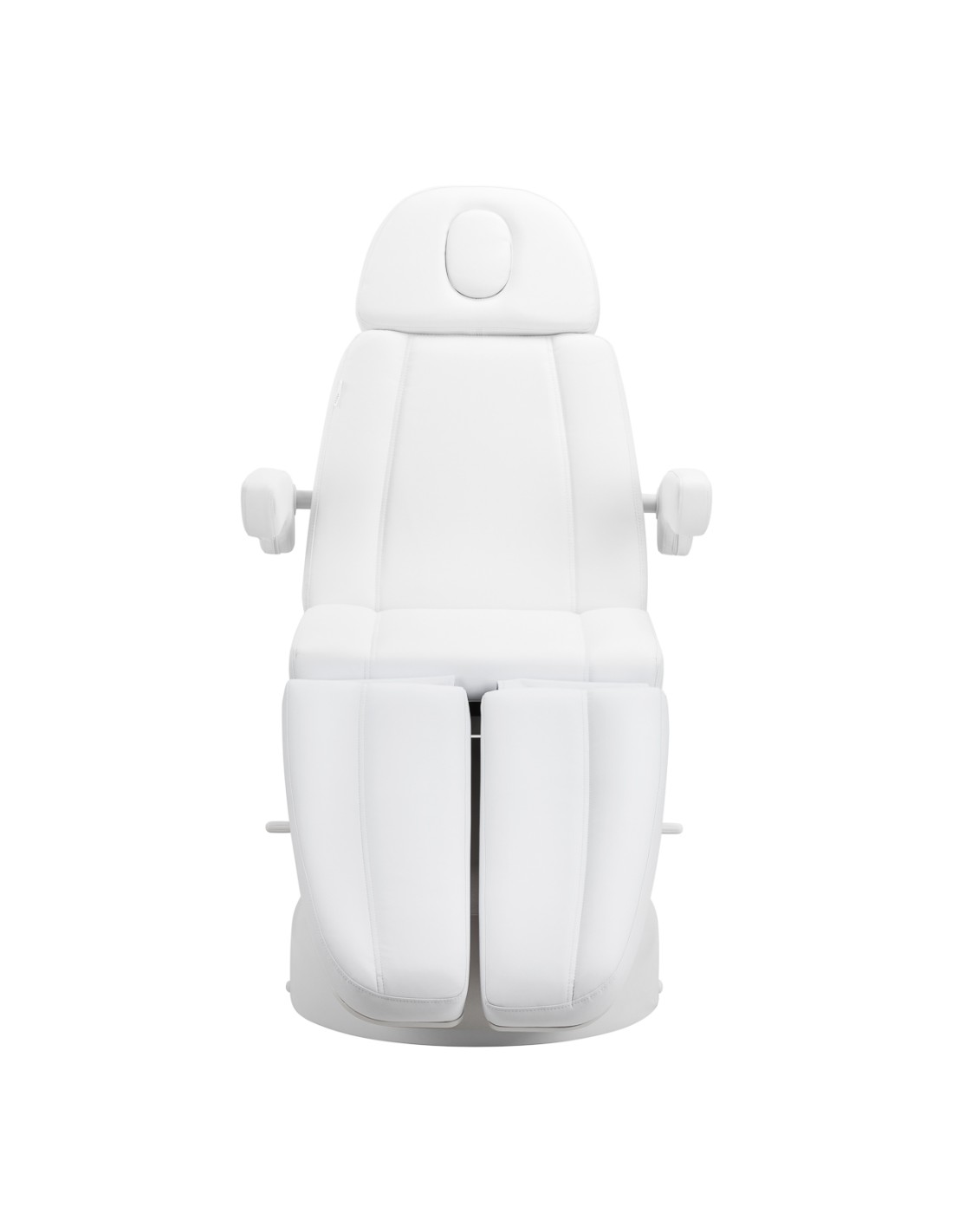 L'ampia seduta garantisce il comfort anche durante i trattamenti più lunghi. I braccioli mobili e facilmente rimovibili , che ruotano di 180°, facilitano l'accomodamento del cliente e l'accesso dell'operatore. La poltrona è inoltre dotata di un poggiatesta regolabile in altezza che garantisce un sostegno stabile della testa e un maggiore comfort, soprattutto per gli utenti più alti.