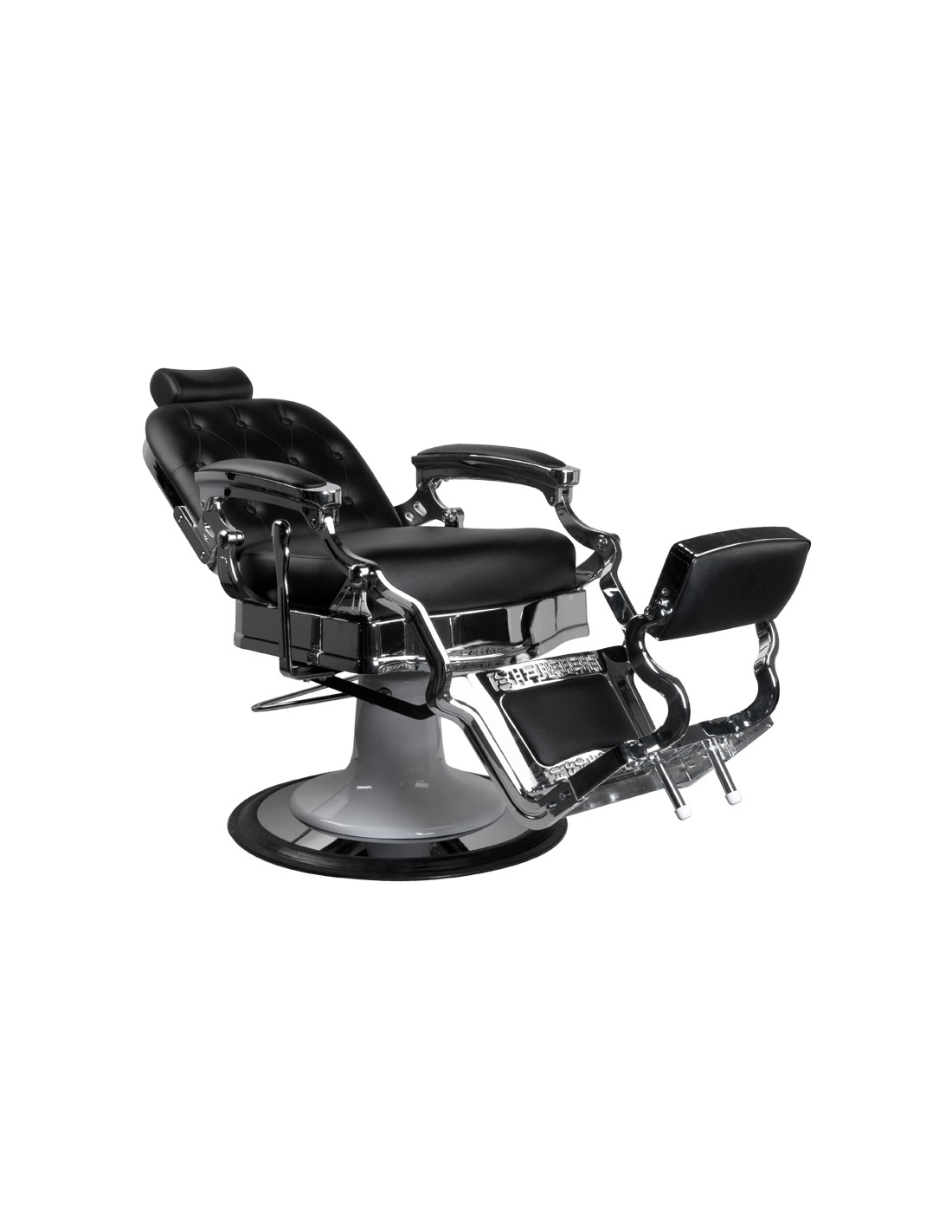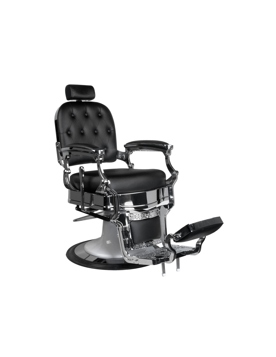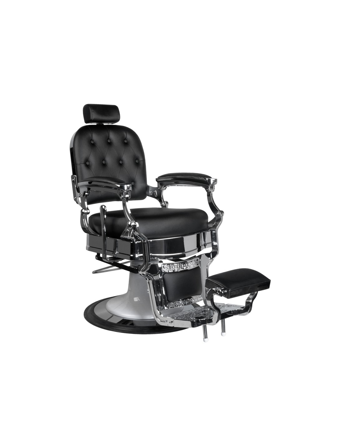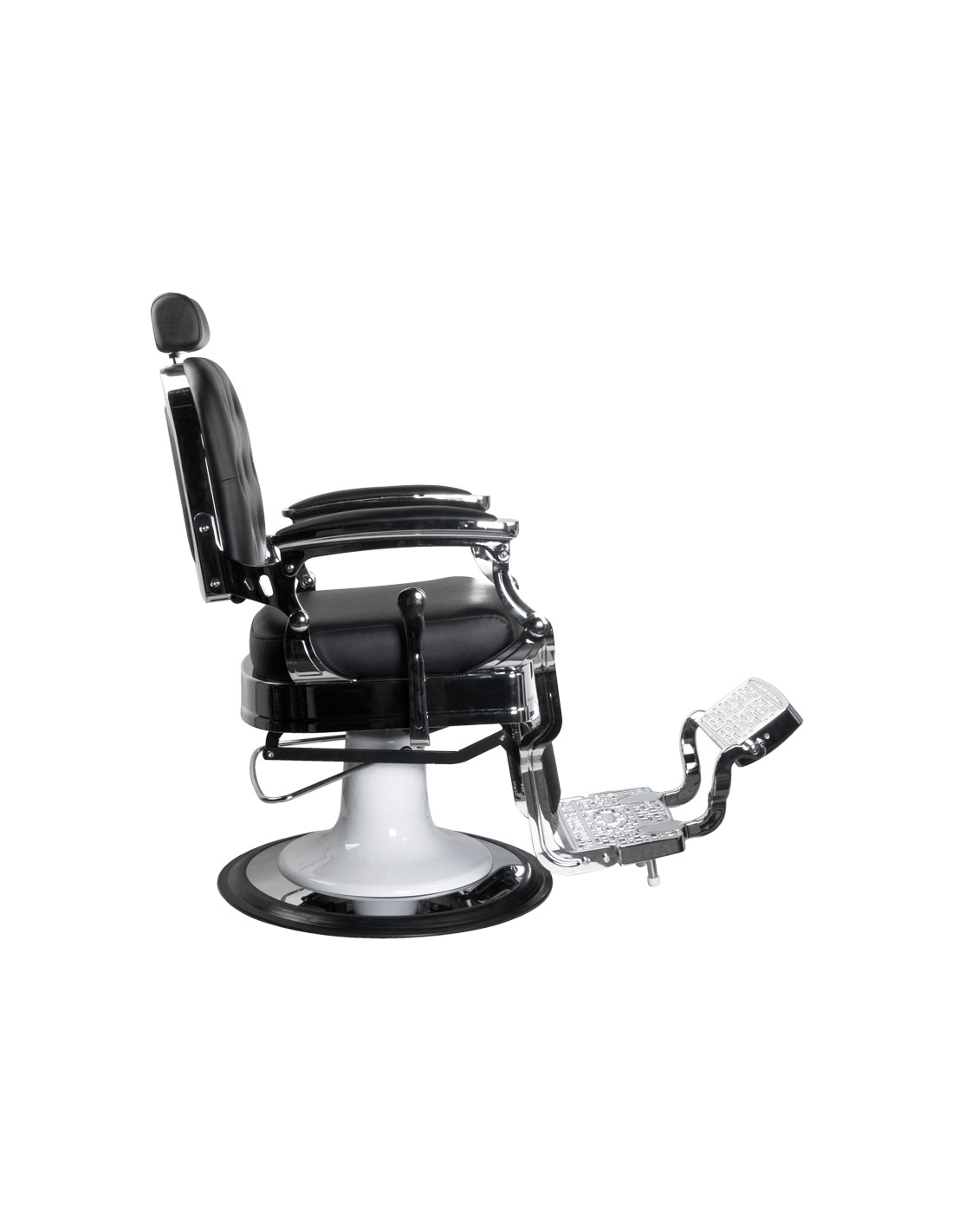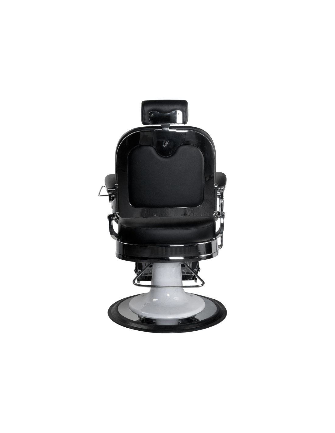 La solida struttura della base garantisce stabilità e un elevato comfort di utilizzo. Il sedile, riempito con schiuma durevole e resistente alla deformazione e rivestito con pelle sintetica piacevole al tatto, resistente all'abrasione e di facile manutenzione, garantisce la durata del mobile e il comfort ai massimi livelli. I materiali utilizzati rendono la poltrona resistente all'umidità, durevole e facile da pulire. L'elegante rivestimento nei toni del nero, la trapuntatura decorativa con bottoni sullo schienale e l'elegante poggiapiedi conferiscono alla poltrona un carattere unico. Il suo design, ispirato allo stile vintage, si adatta perfettamente all'atmosfera dei classici barbieri, sottolineandone l'atmosfera unica. I dettagli raffinati, la texture originale del rivestimento e la base massiccia garantiscono non solo l'estetica, ma anche la massima stabilità. Questa combinazione di eleganza e funzionalità soddisferà le aspettative anche dei professionisti più esigenti.