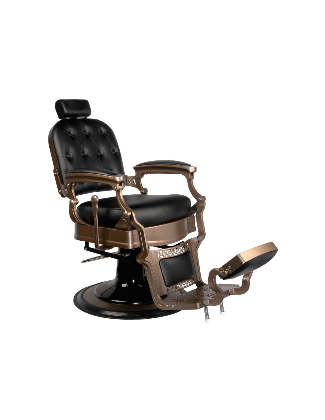 La solida struttura della base garantisce stabilità e un elevato comfort di utilizzo. Il sedile, riempito con schiuma durevole e resistente alla deformazione e rivestito con pelle sintetica piacevole al tatto, resistente all'abrasione e di facile manutenzione, garantisce la durata del mobile e il comfort ai massimi livelli. I materiali utilizzati rendono la poltrona resistente all'umidità, durevole e facile da pulire. L'elegante rivestimento nei toni del nero, la trapuntatura decorativa con bottoni sullo schienale e l'elegante poggiapiedi conferiscono alla poltrona un carattere unico. Il suo design, ispirato allo stile vintage, si adatta perfettamente all'atmosfera dei classici barbieri, sottolineandone l'atmosfera unica. I dettagli raffinati, la texture originale del rivestimento e la base massiccia garantiscono non solo l'estetica, ma anche la massima stabilità. Questa combinazione di eleganza e funzionalità soddisferà le aspettative anche dei professionisti più esigenti.