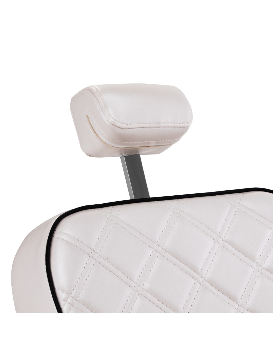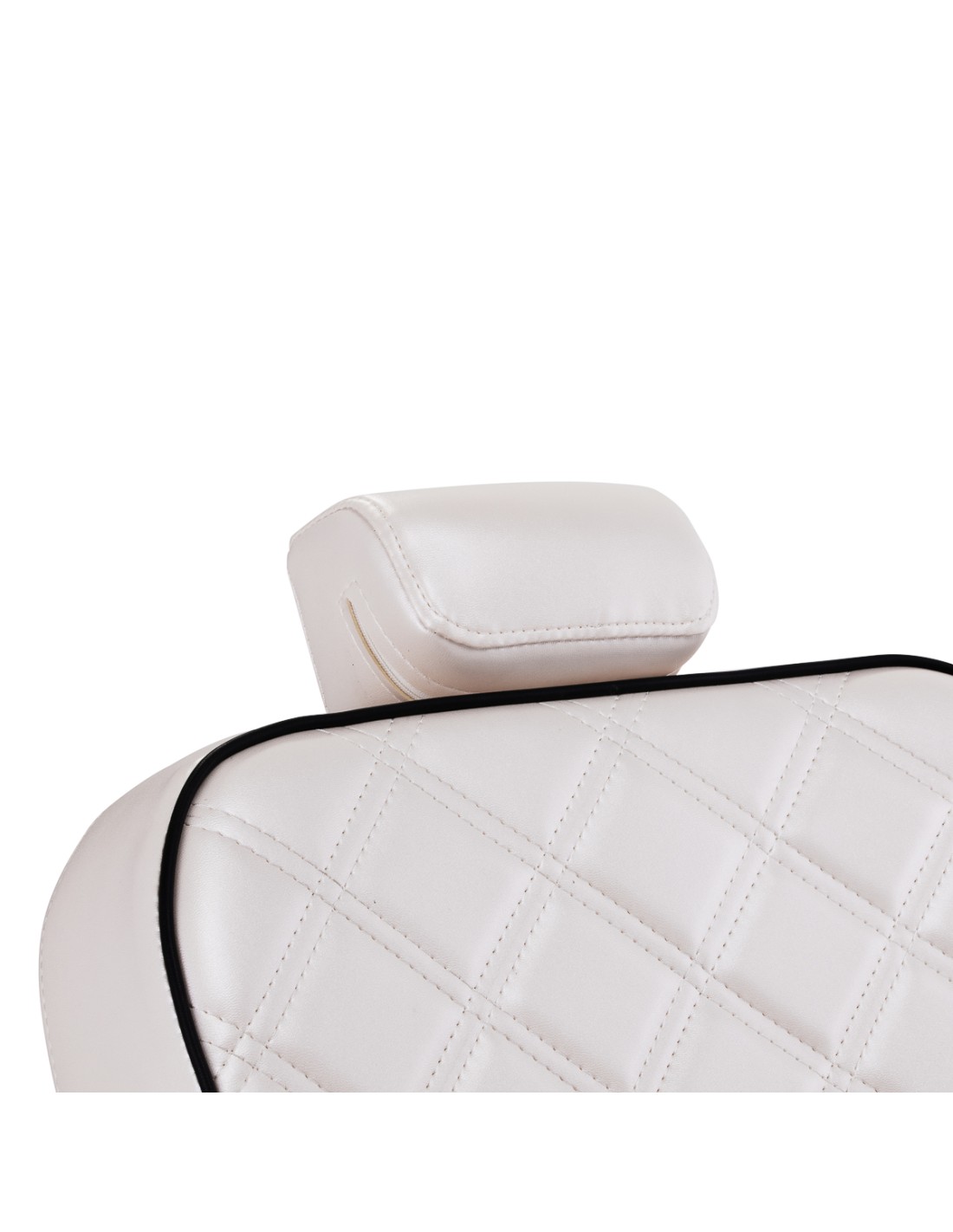 Il sedile ergonomico assicura un comfort completo al cliente, mentre lo schienale con un eccellente supporto per la schiena consente una posizione comoda, particolarmente importante per i trattamenti più lunghi. Il meccanismo di rotazione completa rende il lavoro più efficiente e confortevole. I braccioli imbottiti, montati all'altezza ottimale , consentono di posizionare correttamente le spalle del cliente, evitando che la testa finisca tra le braccia, l'inarcamento e la tensione nella zona del collo e delle spalle.