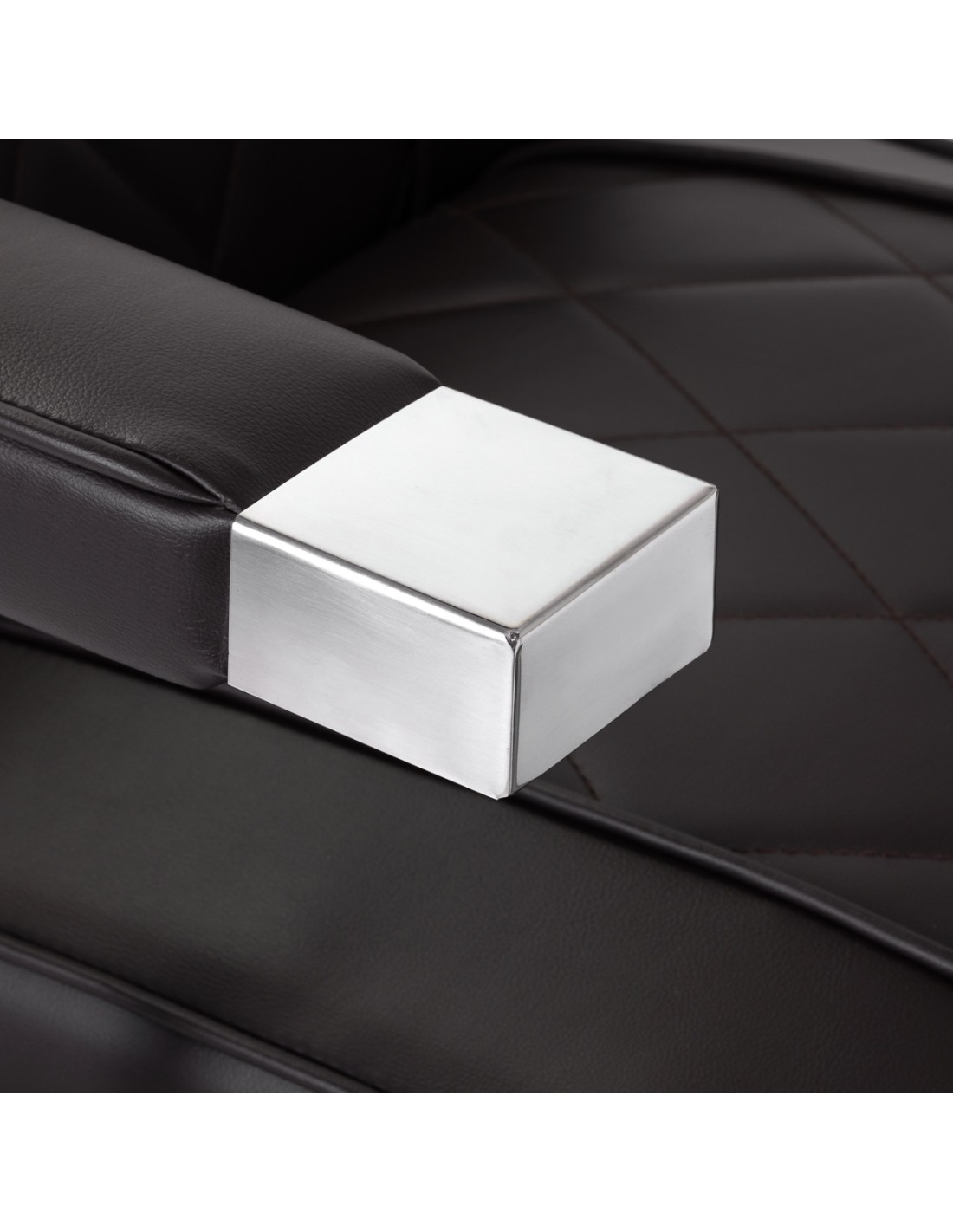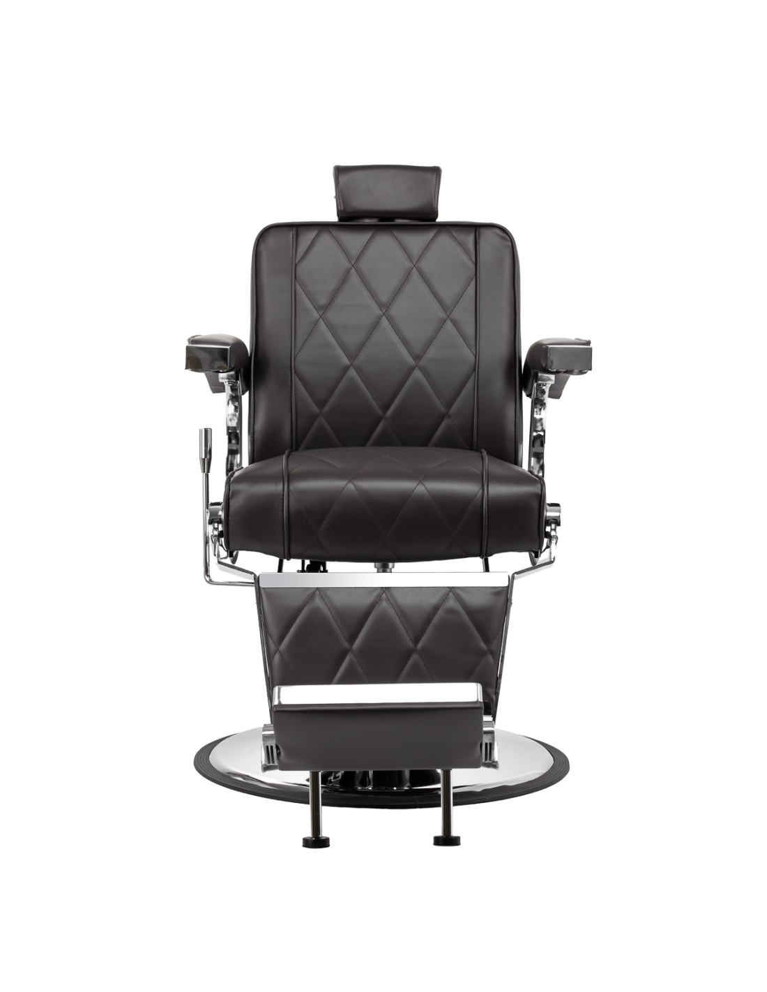 La solida struttura della base rotonda garantisce stabilità e un elevato comfort di utilizzo. L'imbottitura della seduta in schiuma resistente alla deformazione e il rivestimento in pelle sintetica piacevole al tatto con finitura opaca garantiscono la durata del mobile e il suo utilizzo confortevole per lungo tempo. Le eleganti cuciture sul rivestimento conferiscono alla poltrona un carattere che ricorda il design automobilistico, sottolineandone l'aspetto elegante. Inoltre, la rendono resistente all'umidità, durevole e facile da pulire. Il rivestimento nei toni del marrone le conferisce un carattere unico e lo stile minimalista le permette di inserirsi nell'arredamento di qualsiasi barberia.