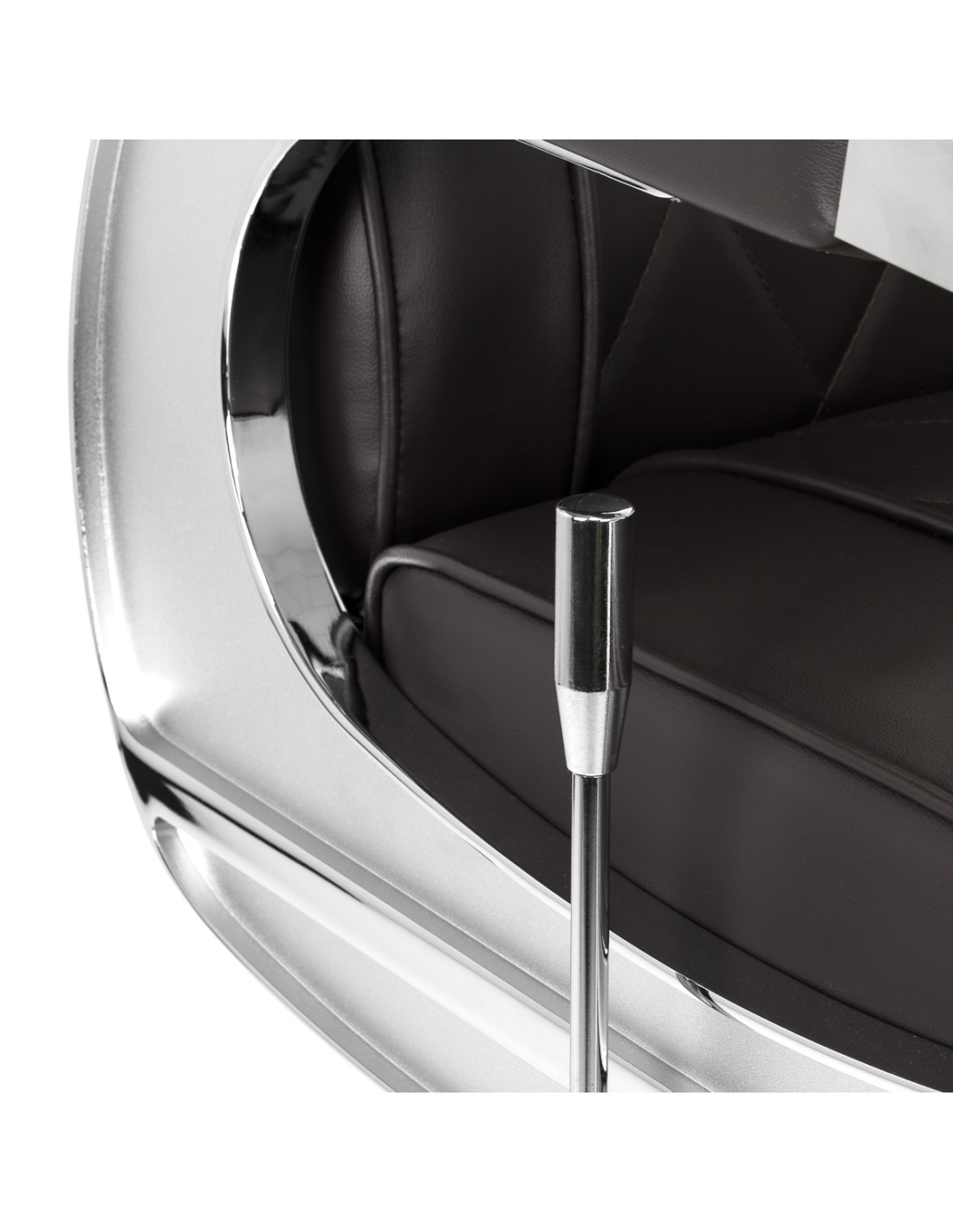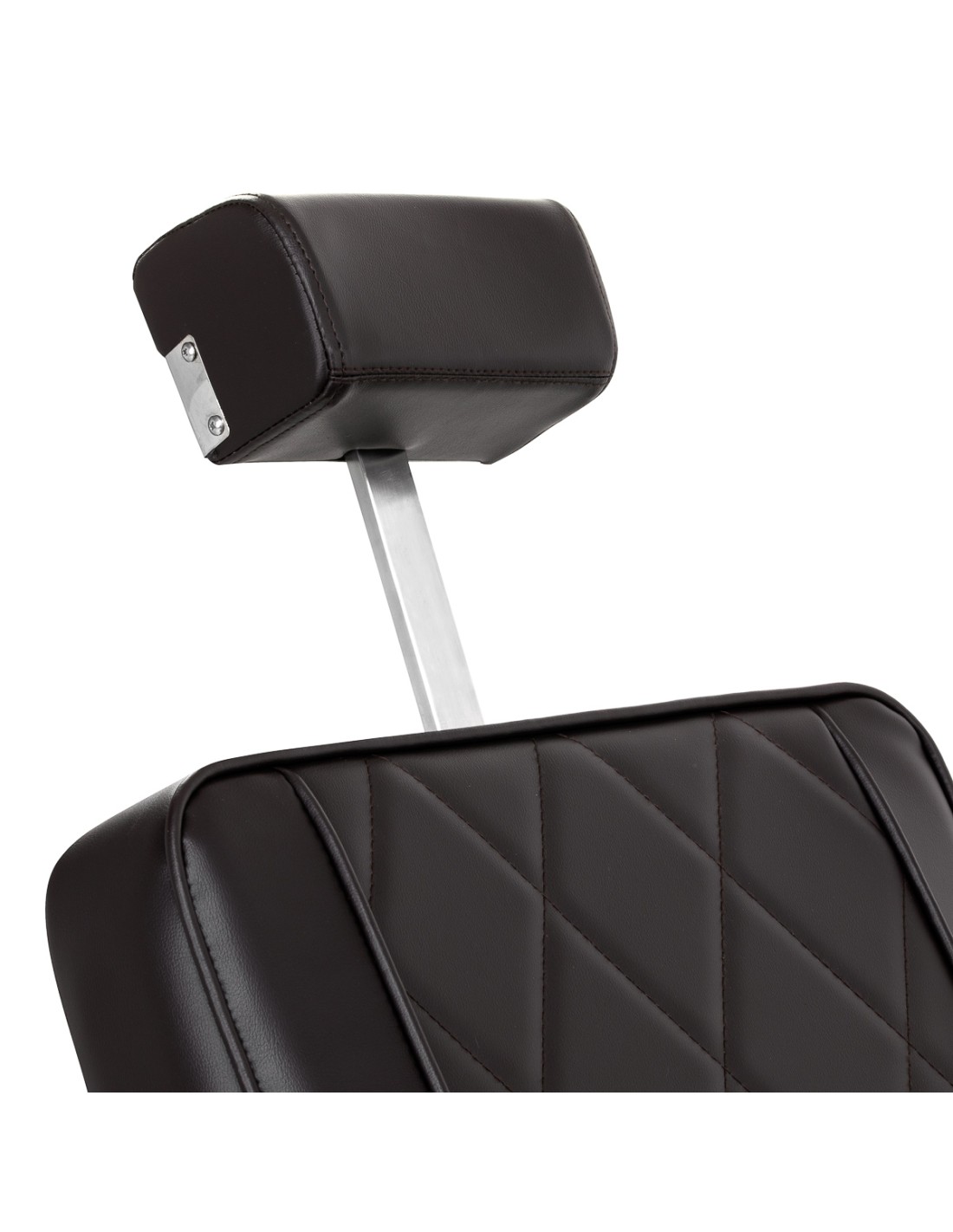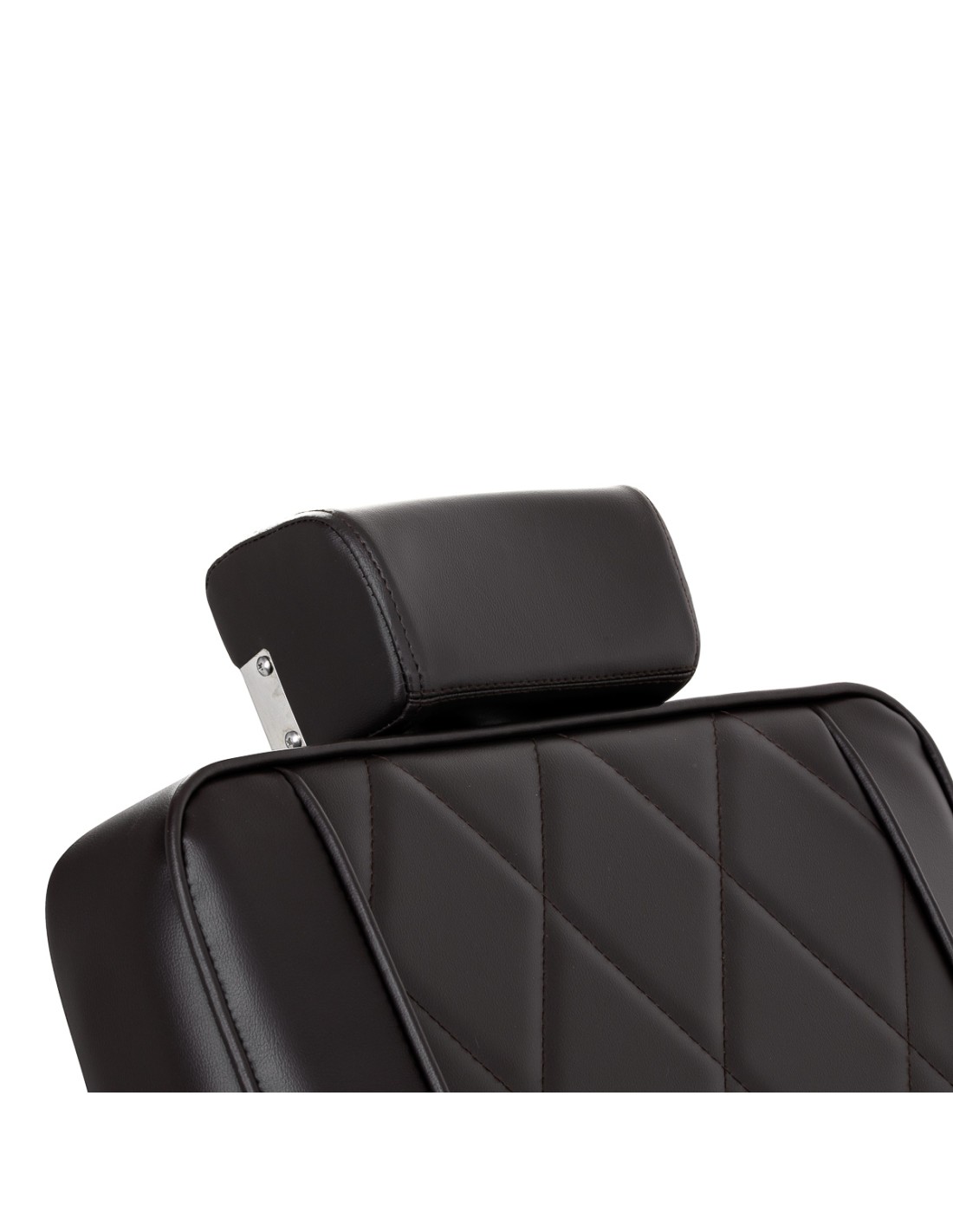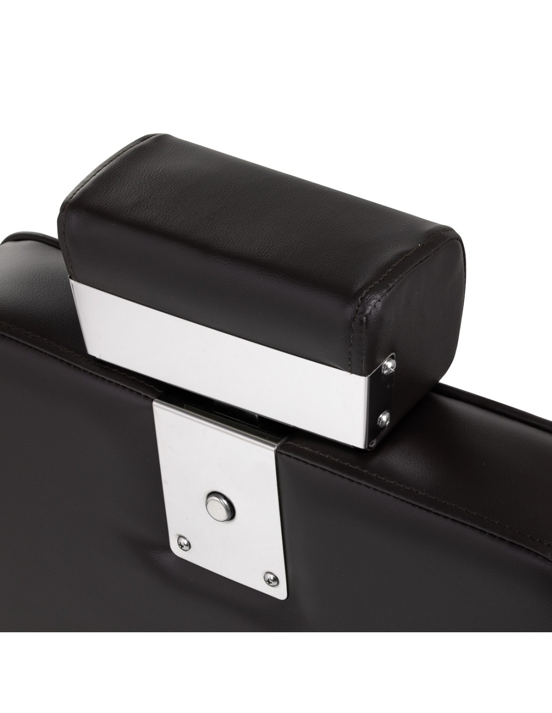 La comoda seduta garantisce il comfort del cliente durante una serie di servizi. Lo schienale ergonomico, che offre un eccellente supporto alla schiena, consente di assumere una posizione comoda, particolarmente importante durante i trattamenti più lunghi. Il meccanismo di rotazione completa della poltrona rende il lavoro più efficiente e confortevole. I braccioli imbottiti, posizionati alla giusta altezza, consentono di posizionare correttamente le spalle del cliente, evitando che la testa si infili nelle spalle e si accasci.
