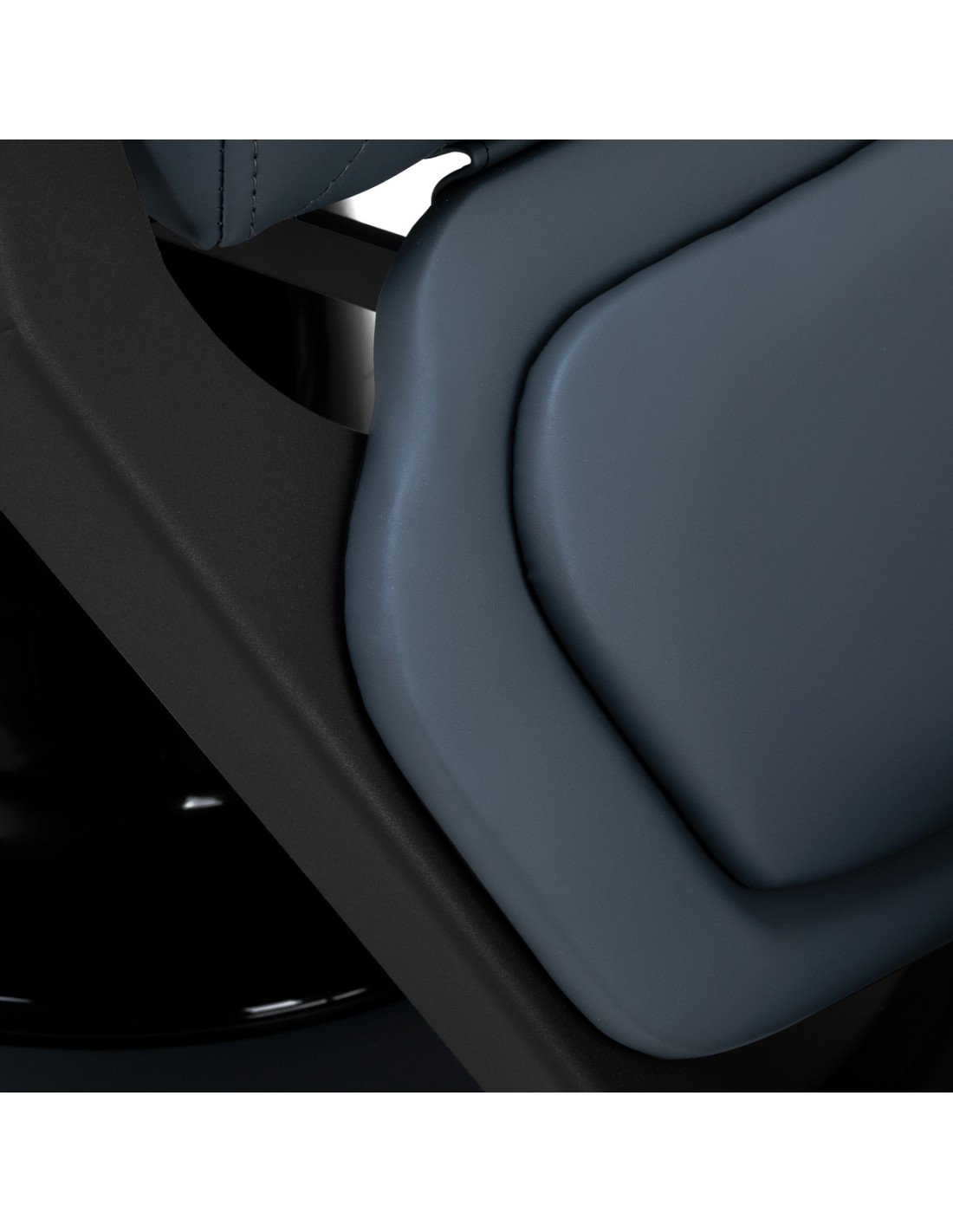 Il design ergonomico della seduta e lo schienale accuratamente profilato assicurano il comfort del cliente anche durante i trattamenti più lunghi. I braccioli imbottiti, montati all'altezza ottimale, consentono un corretto posizionamento delle braccia del cliente, evitando tensioni nella zona del collo e delle spalle. Il meccanismo di rotazione completa aumenta la flessibilità di lavoro e consente di regolare facilmente la poltrona in qualsiasi posizione.