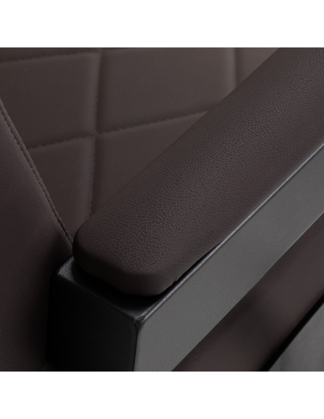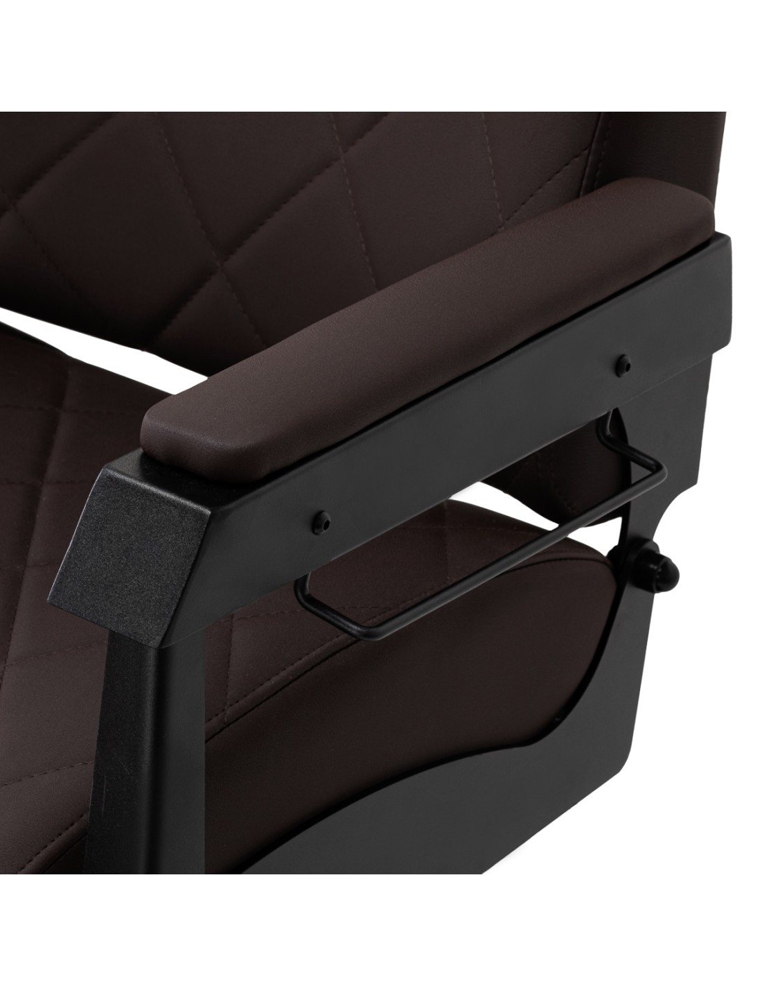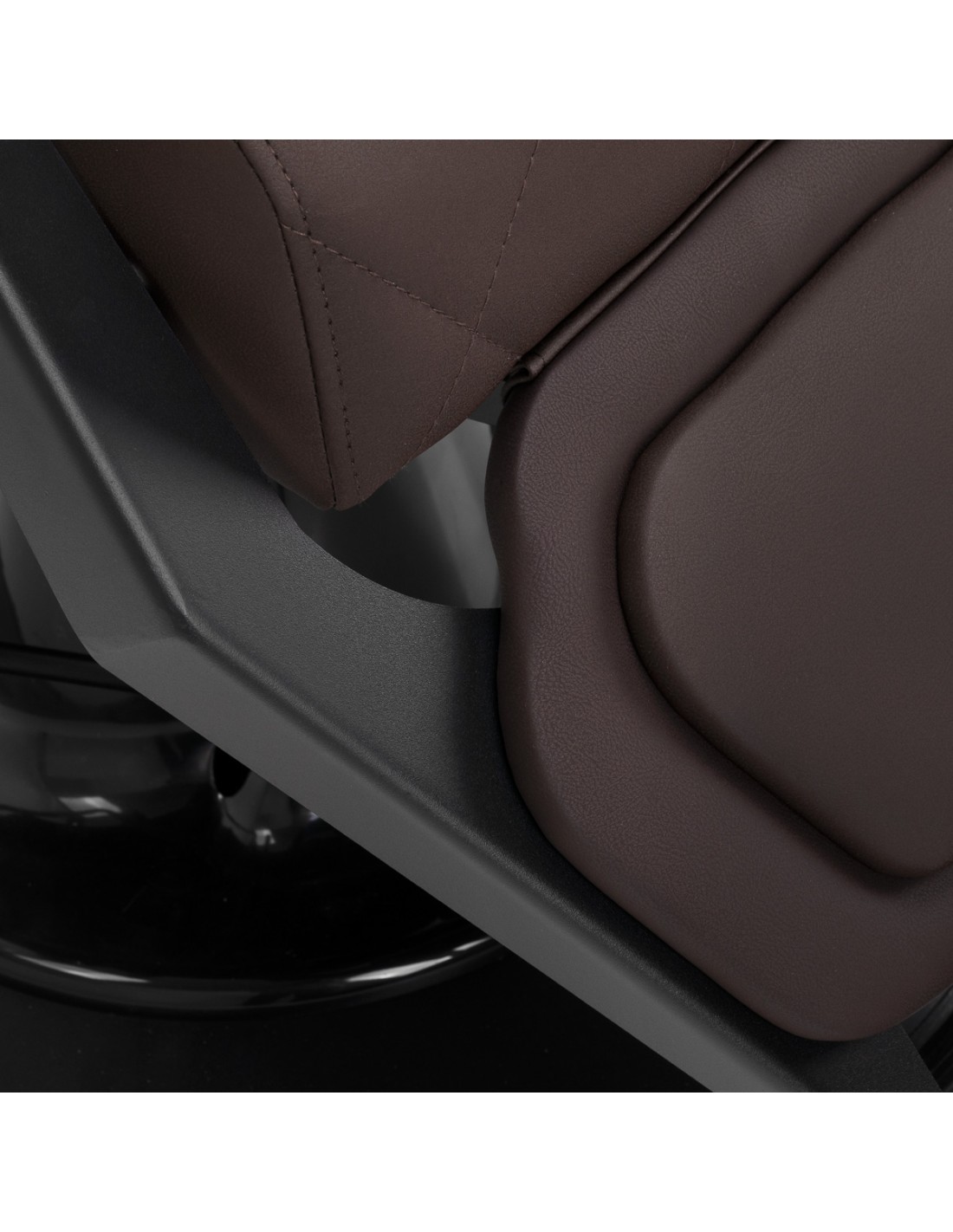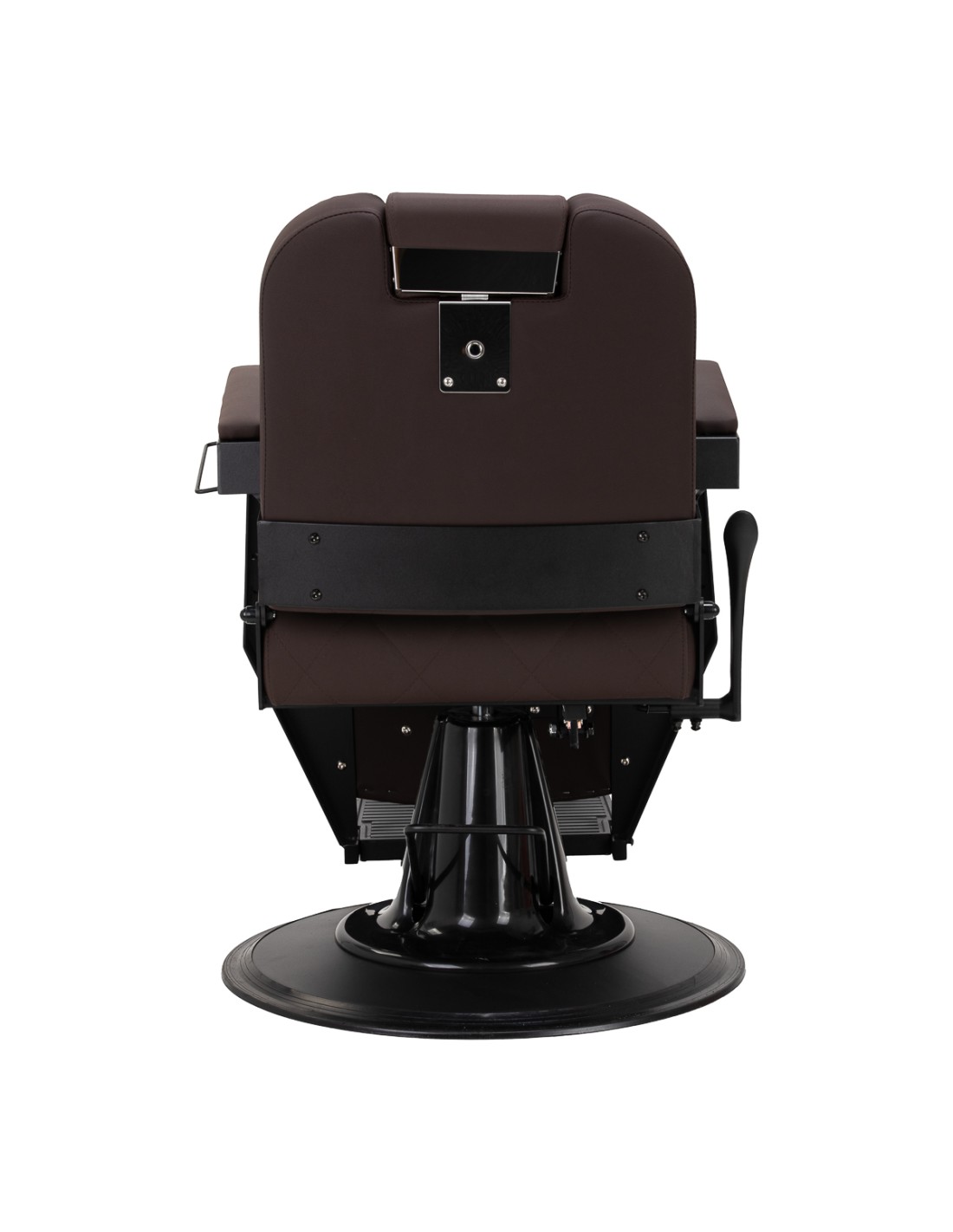 La struttura stabile garantisce sicurezza e durata nel tempo. Il sedile, riempito di schiuma resistente alla deformazione, e il rivestimento in morbida pelle sintetica assicurano durata e comfort. I materiali resistenti all'umidità non sono solo durevoli ma anche facili da pulire. Il rivestimento marrone abbinato alla struttura nera conferisce alla poltrona un aspetto moderno e professionale, mentre il suo stile minimalista le permette di adattarsi all'arredamento di qualsiasi barberia.
