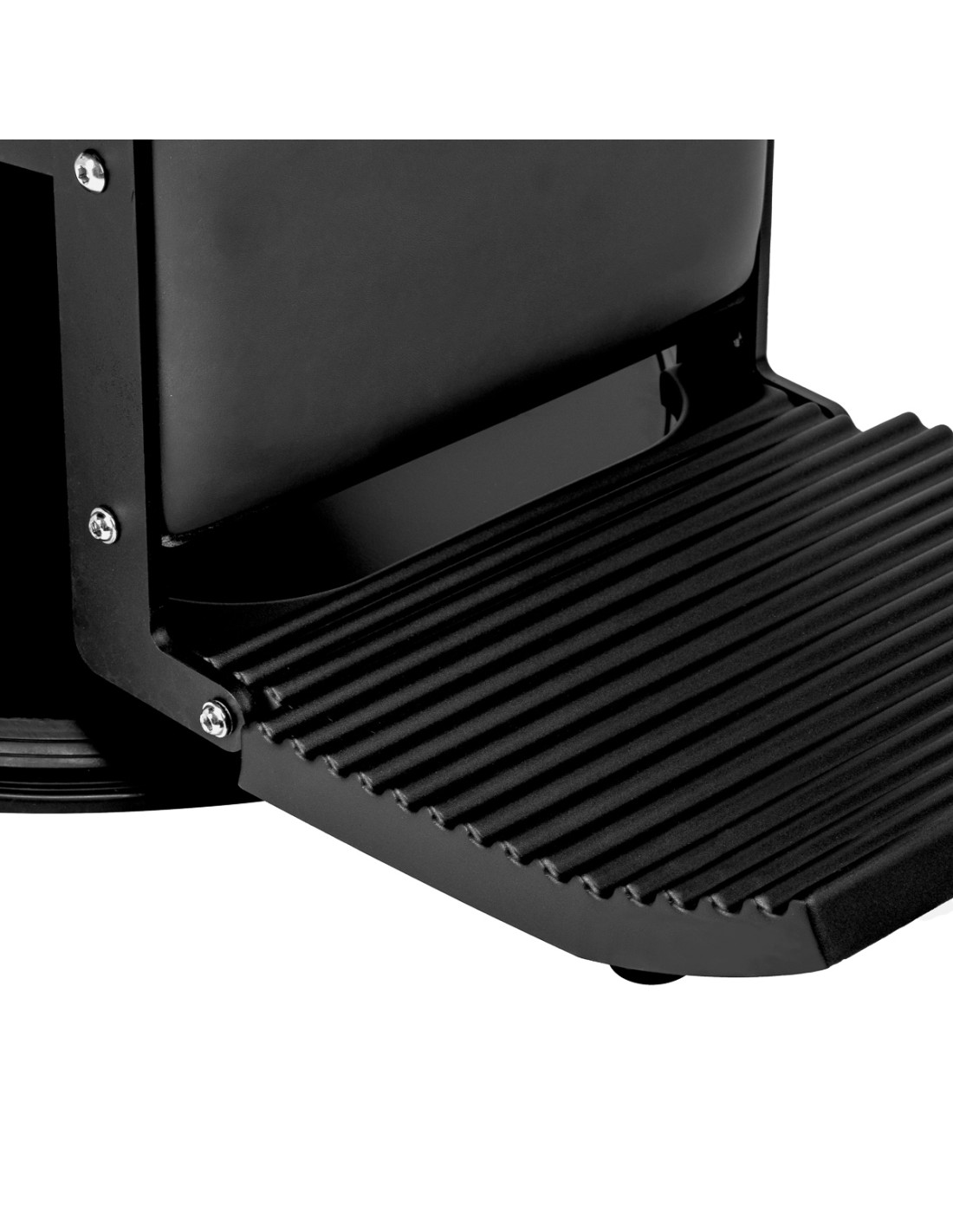 La robusta struttura della base garantisce stabilità ed elevato comfort. Il sedile è imbottito di schiuma resistente alla deformazione e rivestito di morbida pelle sintetica opaca, che unisce durata e comfort. I materiali utilizzati per la finitura sono resistenti all'umidità, durevoli e facili da pulire, rendendo la sedia perfetta per l'uso quotidiano. Le cuciture eleganti e il rivestimento nei toni del nero le conferiscono un carattere unico, integrandosi perfettamente con l'arredamento dei moderni barbieri.